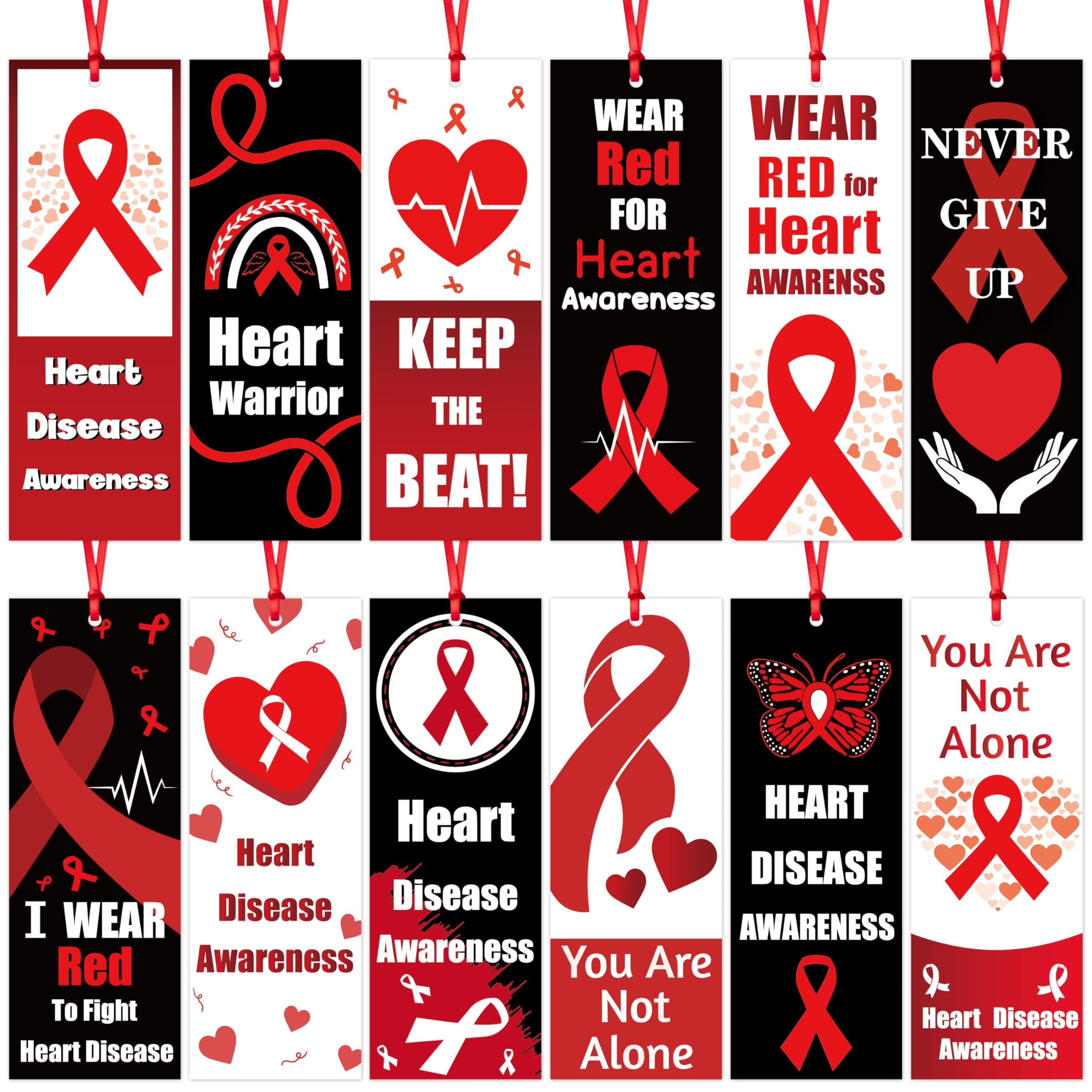 Amazon Haooryx Heart Disease Awareness Bookmarks 240Pcs Wear Red For Heart Bookmarks With Ribbon Never Give Up Heart Disease Awareness Week Book Marks For Red Ribbon Week Awareness Seminar Handout