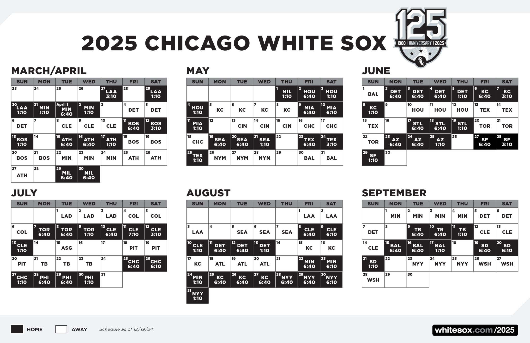 White Sox Printable Schedule Chicago White Sox