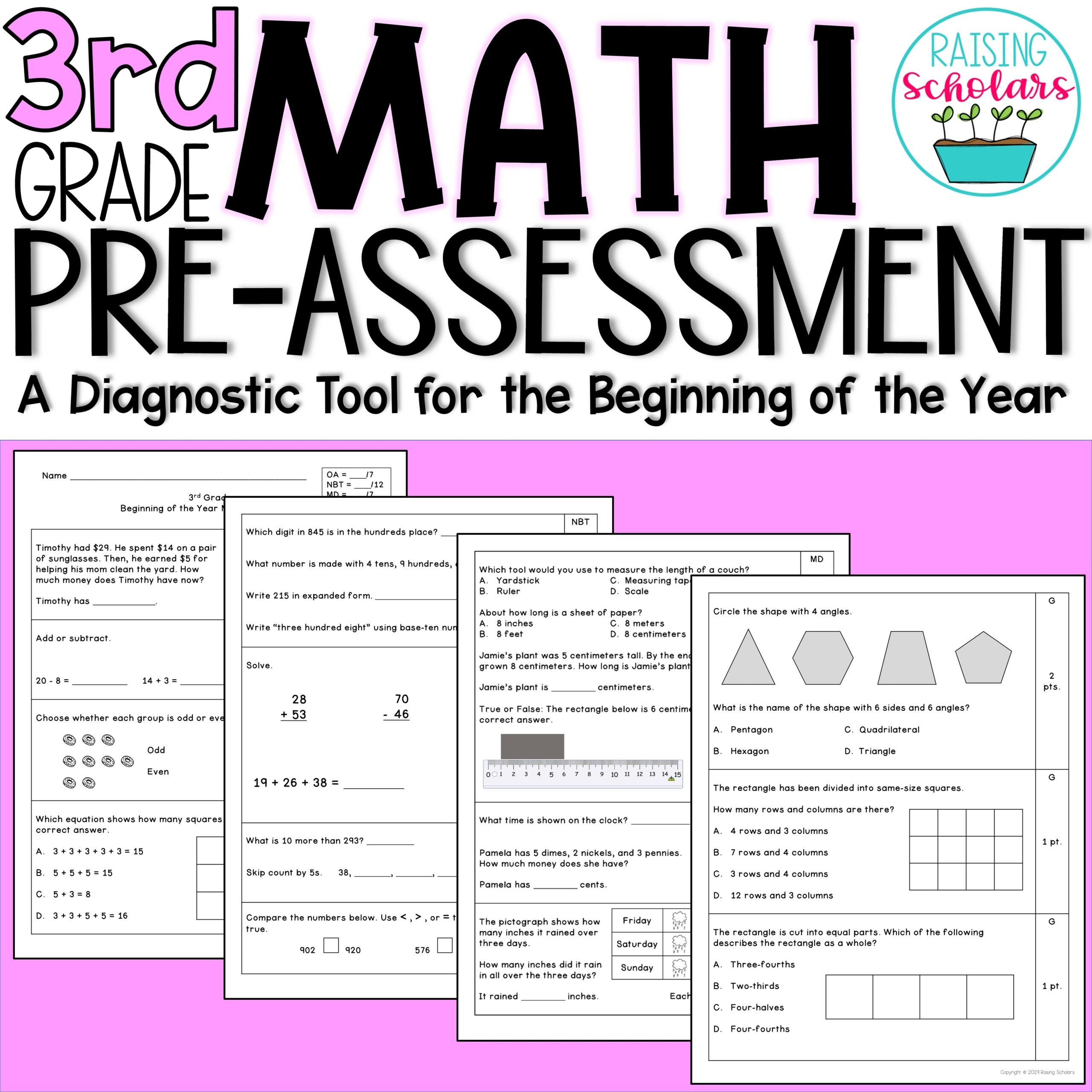 Beginning Of Year 3rd Grade Math Pre Assessment Pretest Made By Worksheets Library
