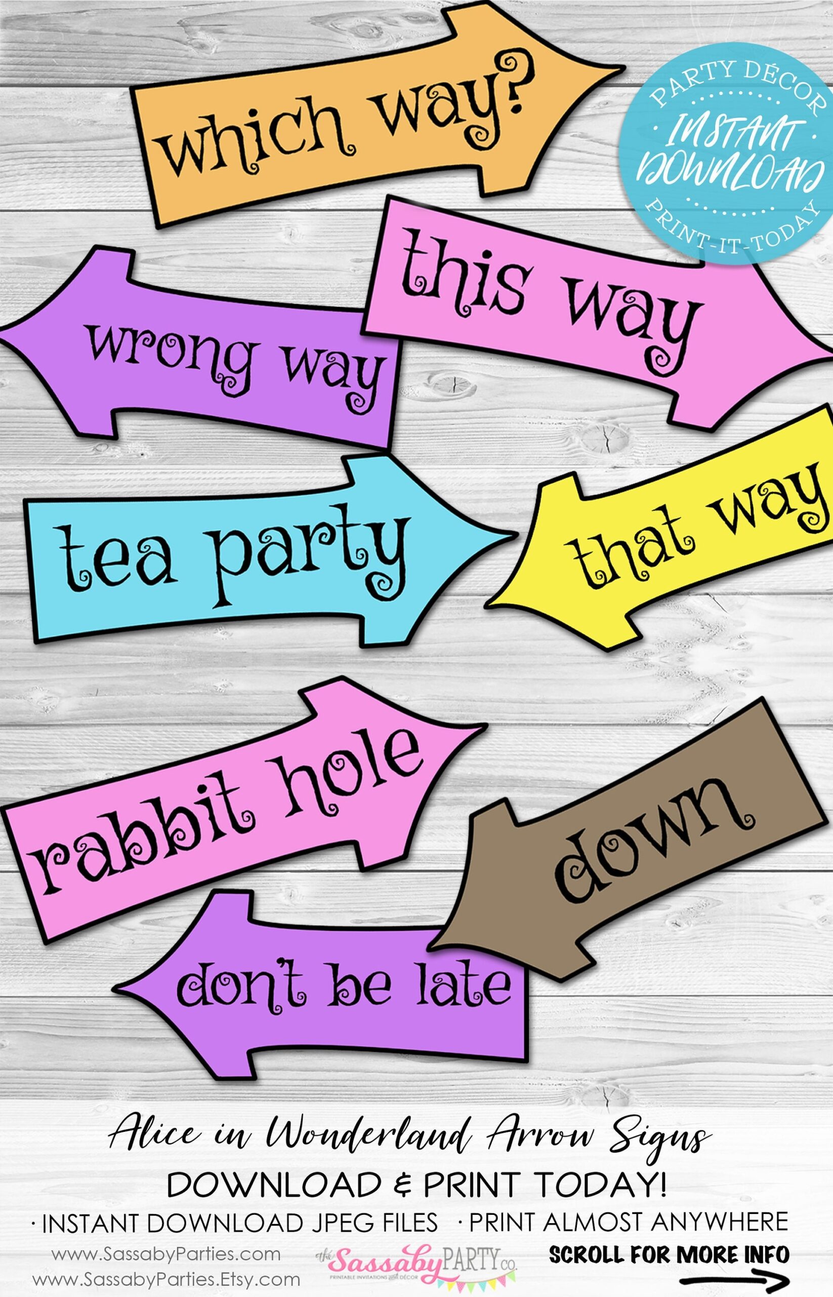 Alice In Wonderland Arrows Instant Download Alice Birthday Party Directional Signs Mad Hatter Tea Party Decor Wonderland Decorations Etsy New Zealand
