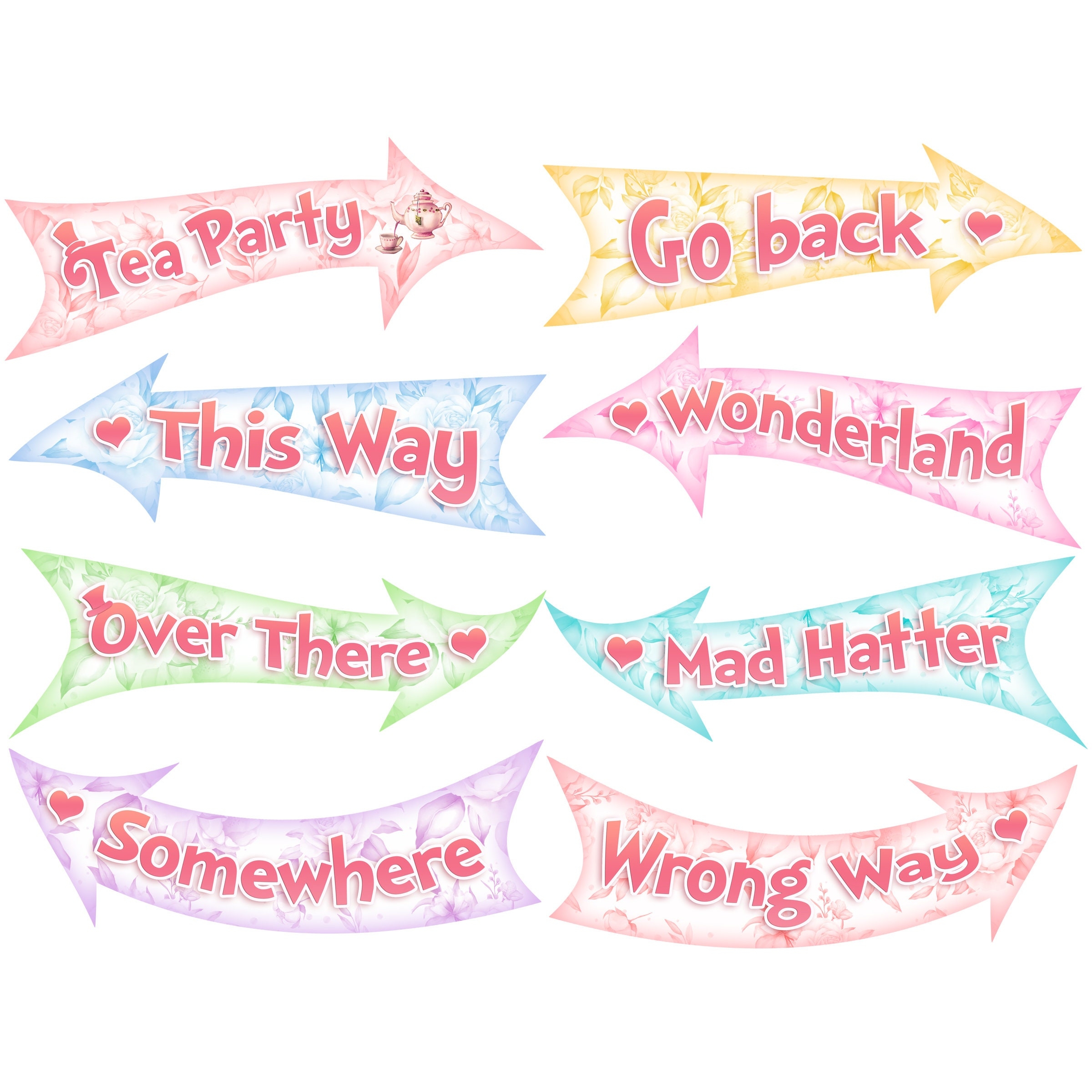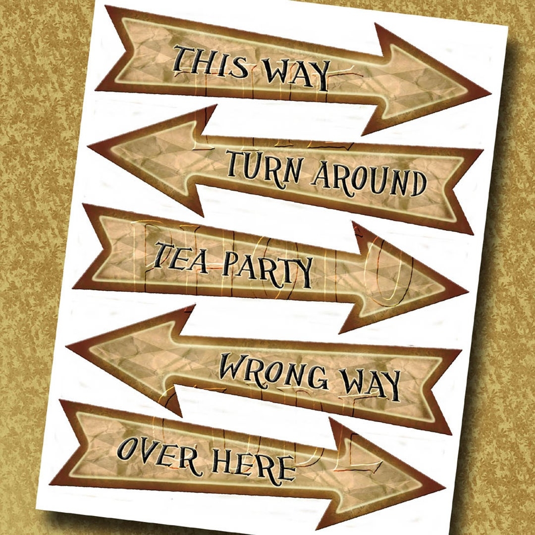 Alice In Wonderland ARROW Signs this Way Wrong Way Tea Party Turn Around Over There Instant Download Printable JPG Digital File Etsy