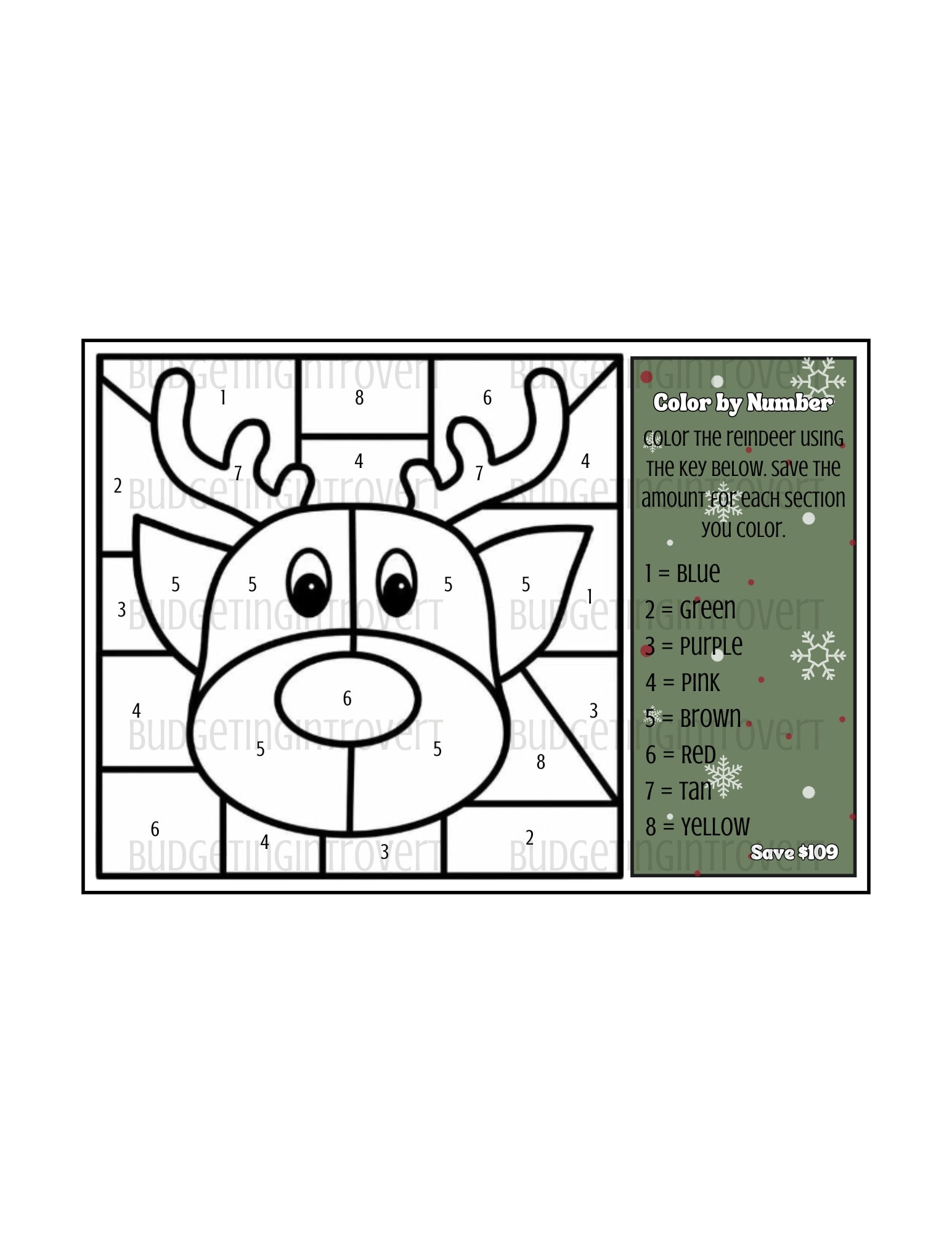 Reindeer Color By Number Savings Challenge Digital Download Etsy