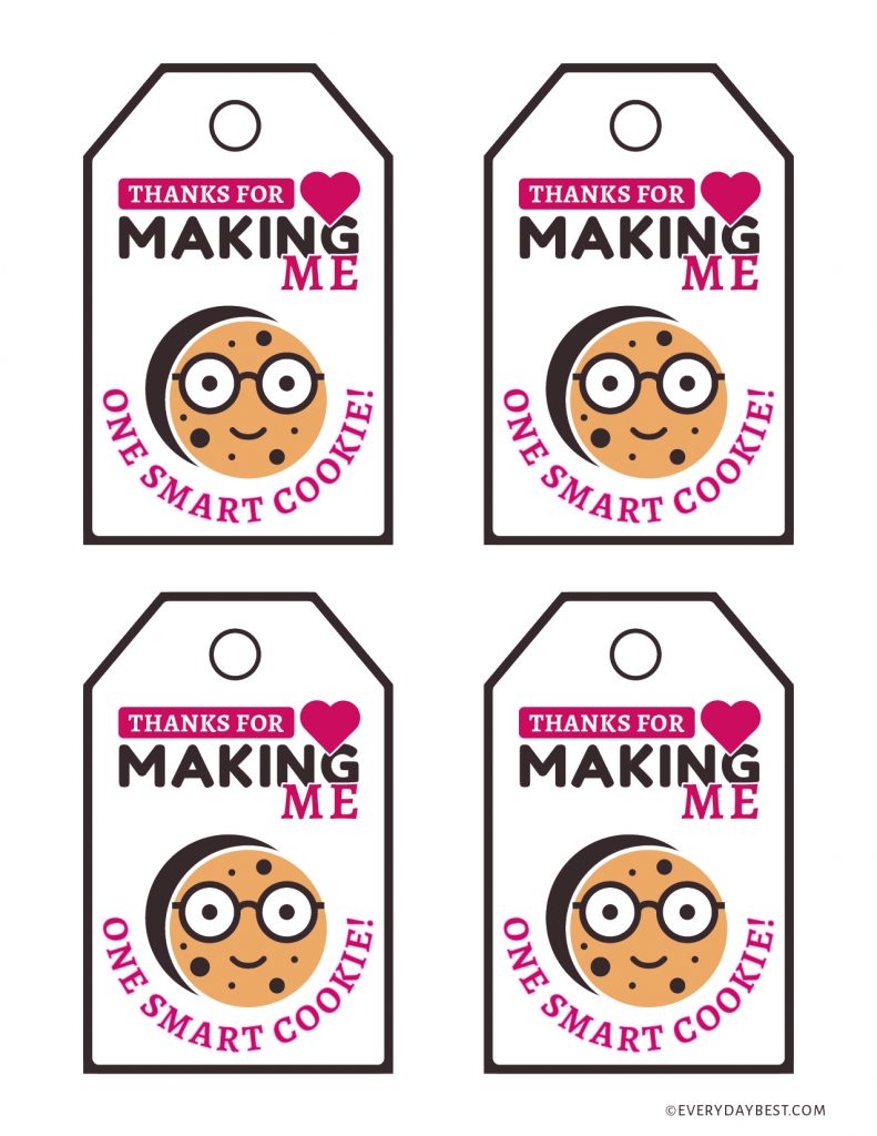 Teacher Appreciation Gift Tags Printable For Cookies Thanks For Making Me One Smart Cookie Press Print Party