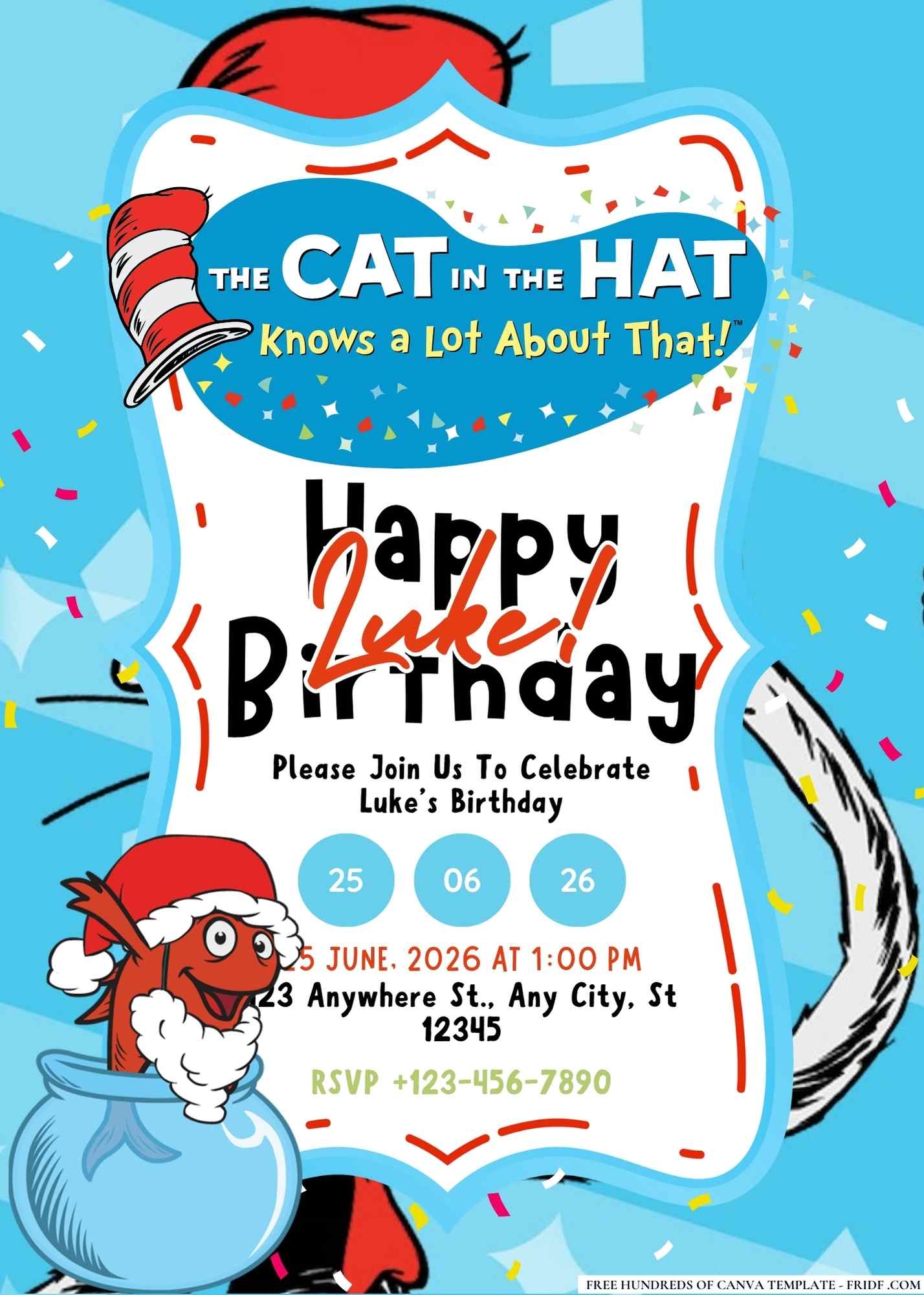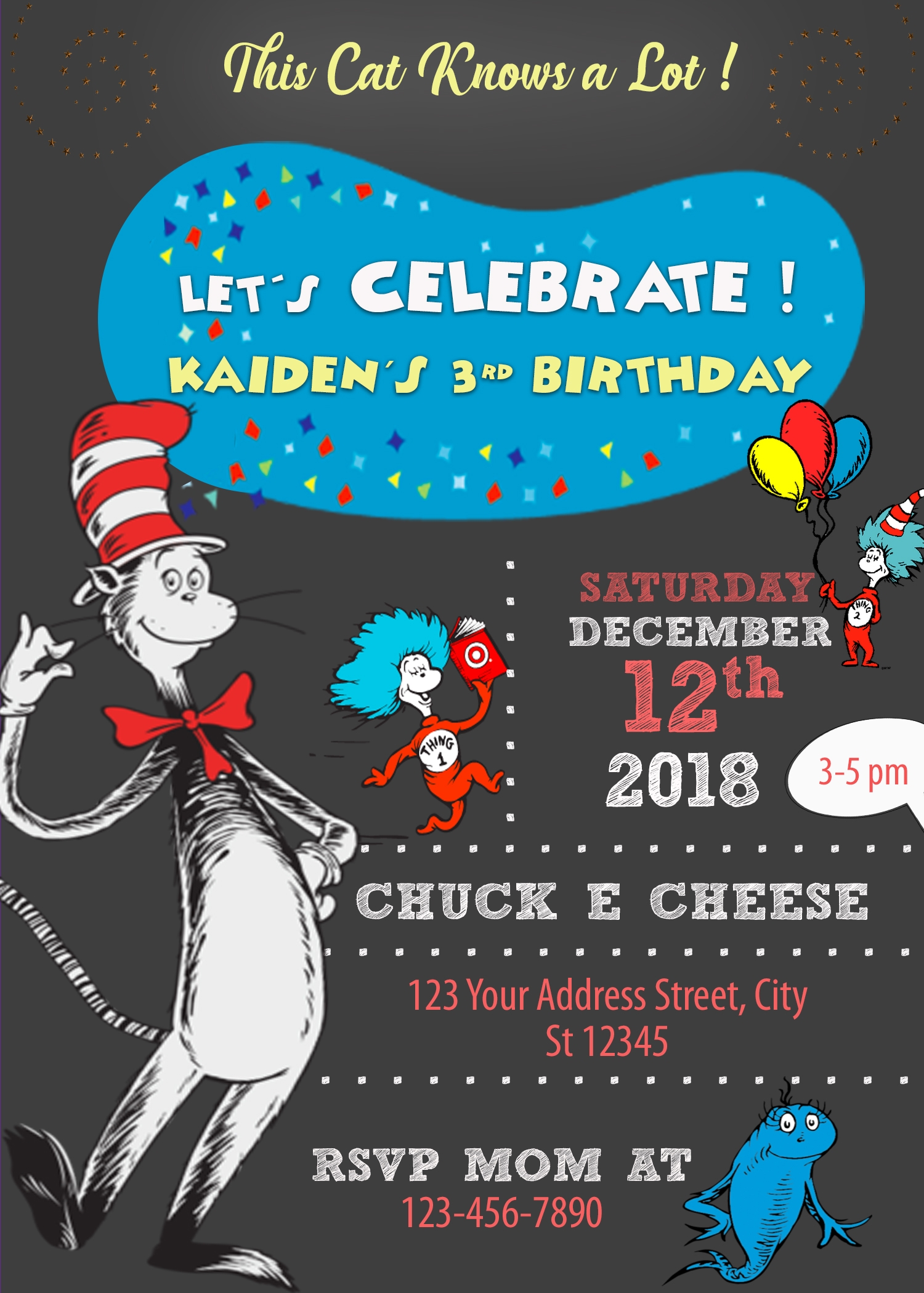 FREE Editable The Cat In The Hat Knows A Lot About That Birthday Invitations