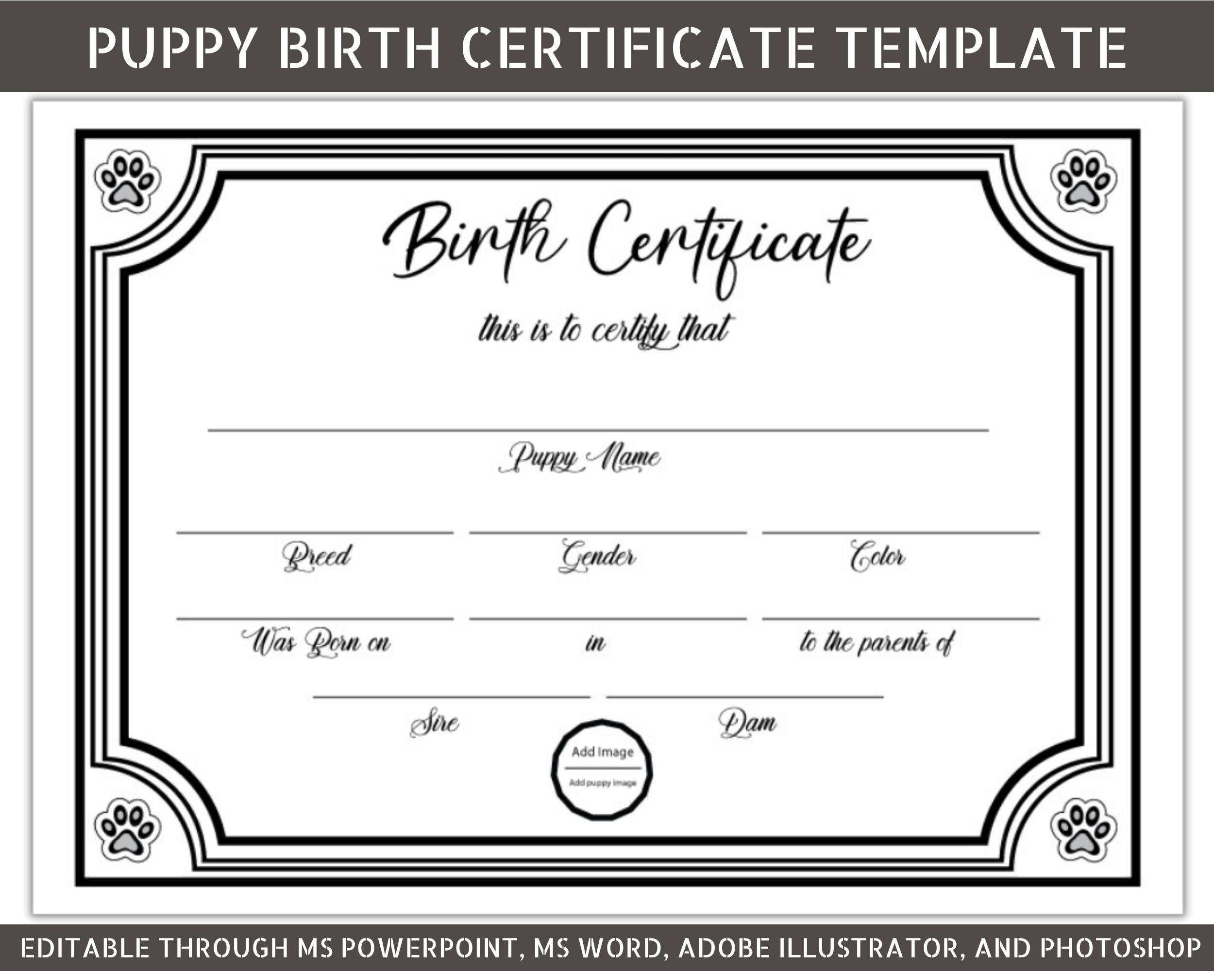 Editable Puppy Birth Certificate Template Dog Adoption Certificate Pet Birth Certificate Dog Breeder Forms Etsy