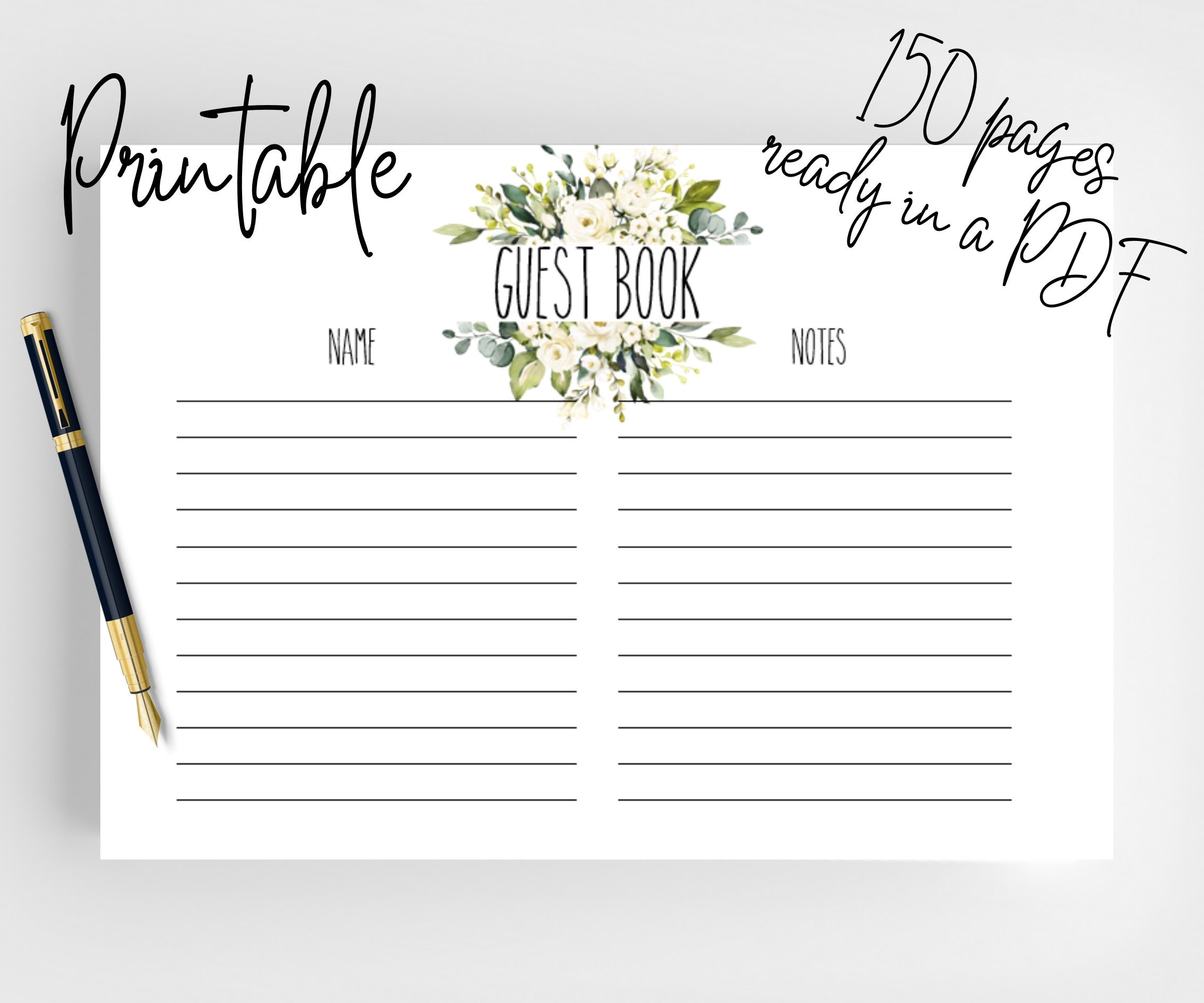 Printable Wedding Guest Book Pages wedding Guest Book guest Book Printable Template instant Download pdf File white Flowers white Wedding Etsy