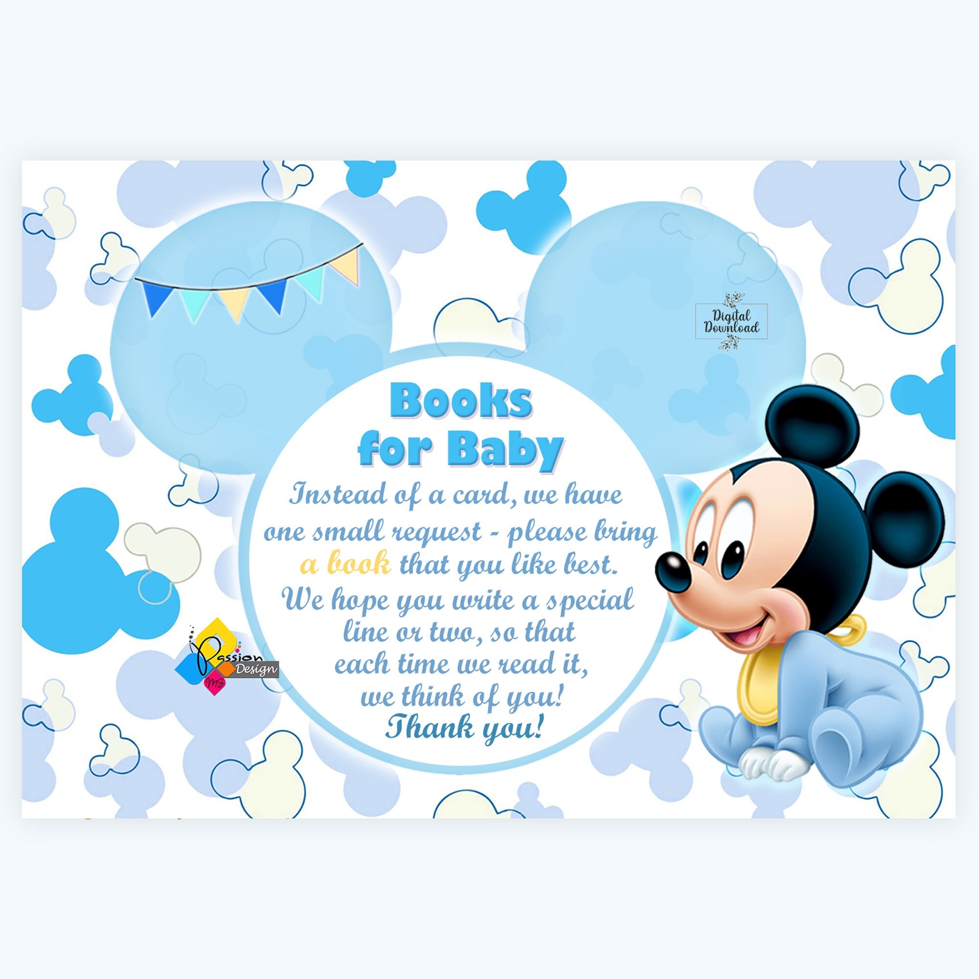 Printable Baby MICKEY MOUSE Baby Shower Book Request Card Mickey Mouse Baby Shower Books For Baby Card Instant Download Etsy