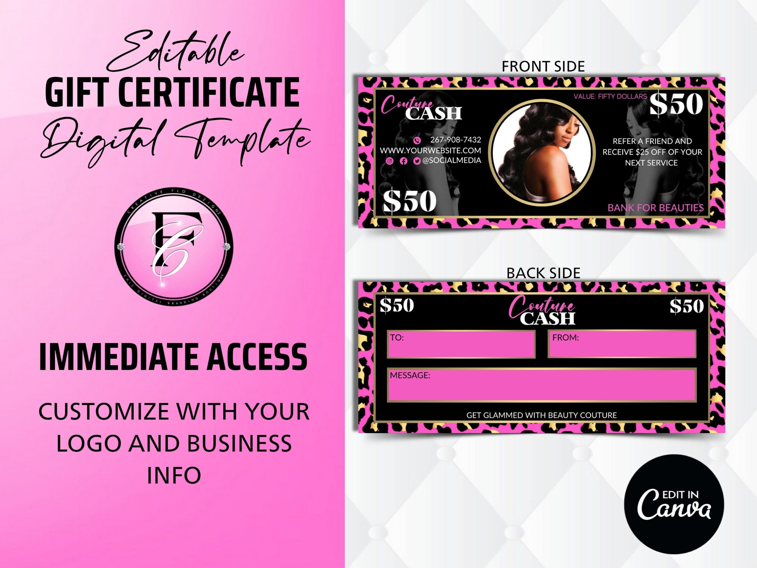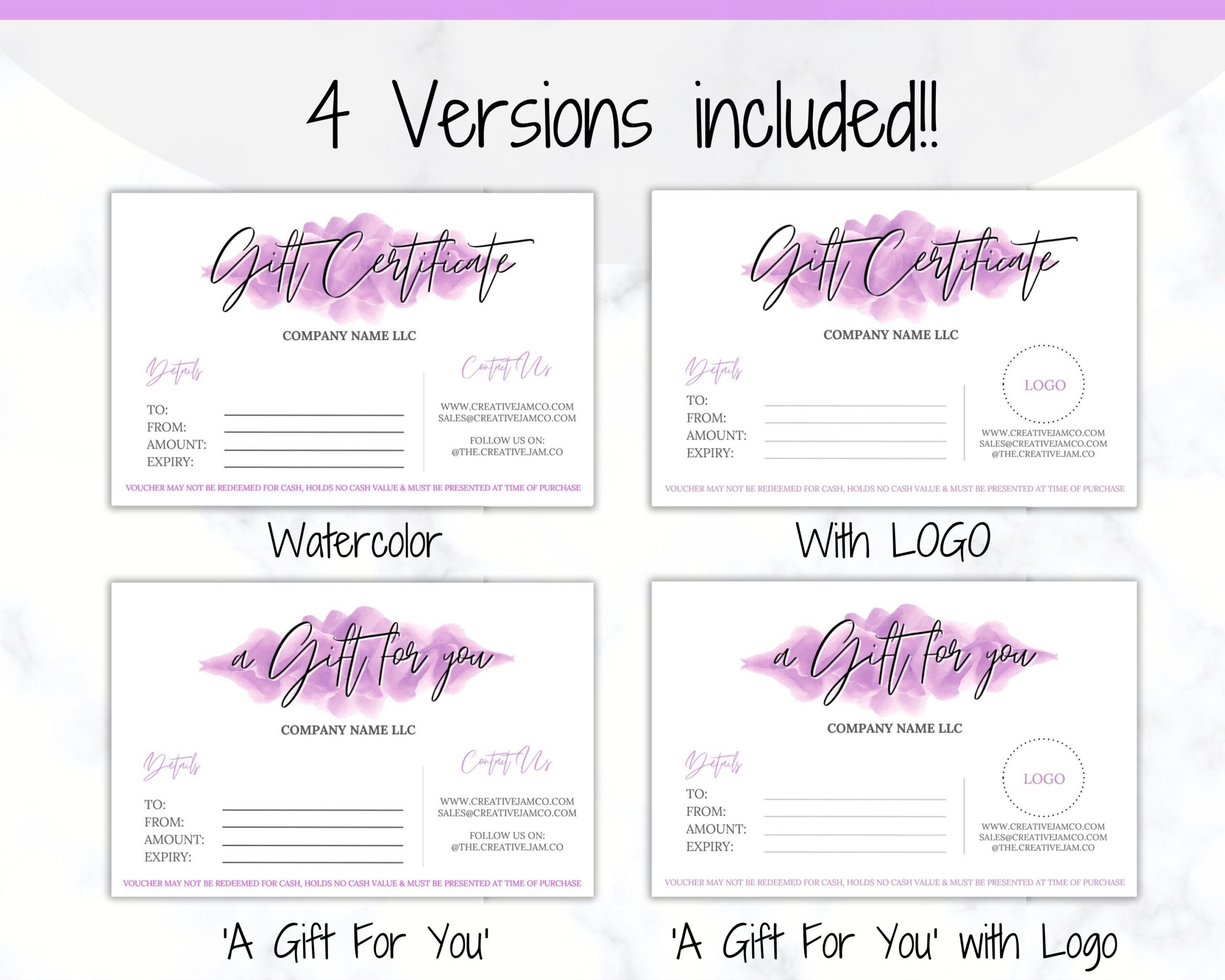 Editable Gift Certificate Printable Gift Card ADD Your LOGO DIY Gift Certificate Editable Gift Voucher Template Edit Now Instant Access Etsy