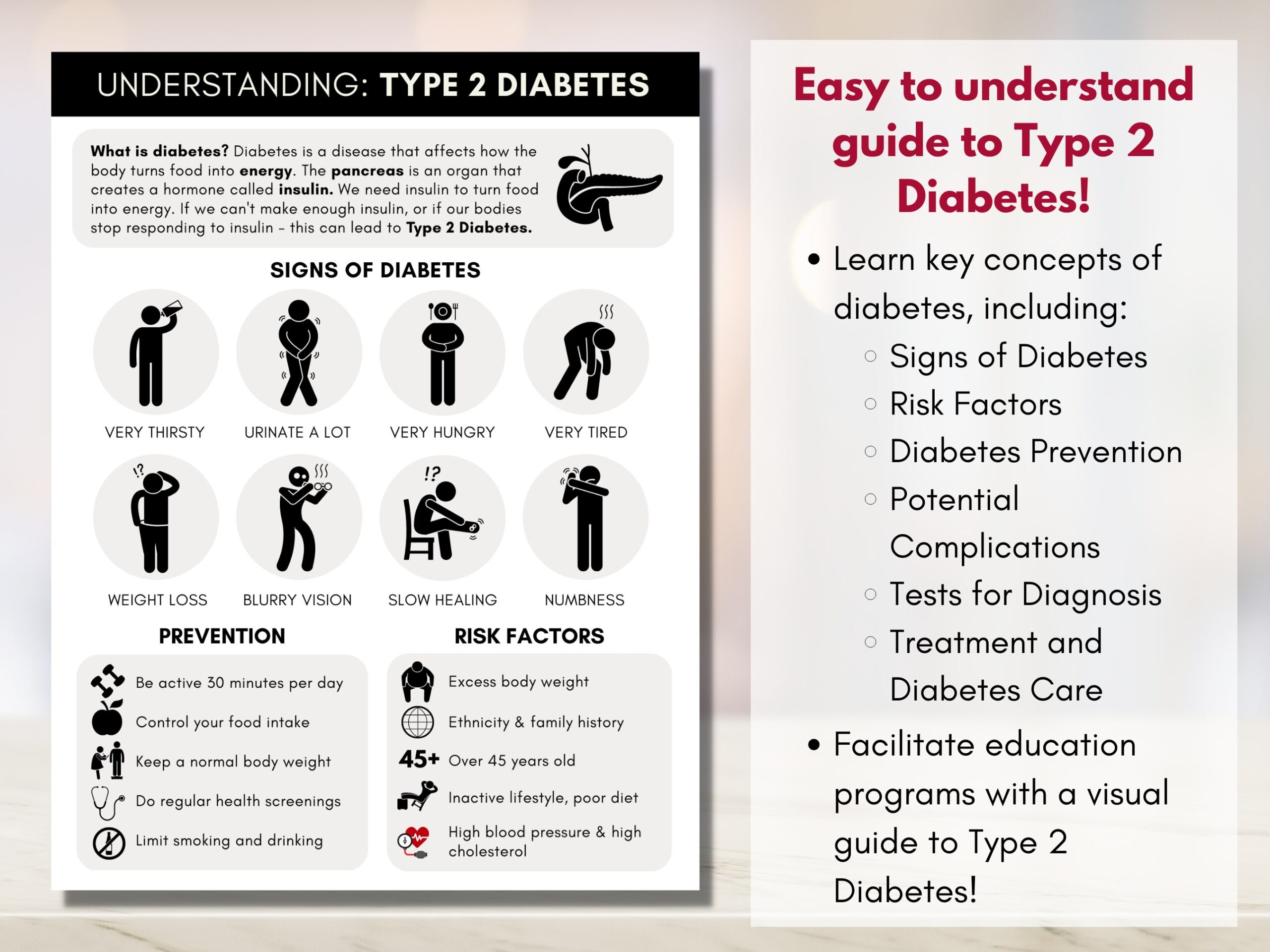 Diabetes Information Handout Patient Worksheet Type 2 Diabetes Pamphlet Chronic Disease Management Infographic digital Printable Etsy