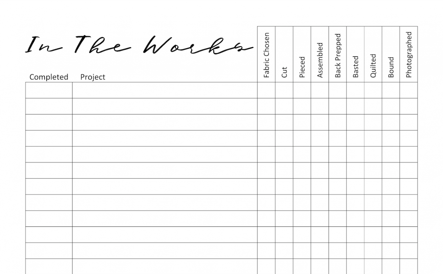 This simple yet effective form allows you to stay on top of your quilting projects without feeling overwhelmed. You can use it to plan out your next quilt, keep track of your progress, and make notes for future reference.