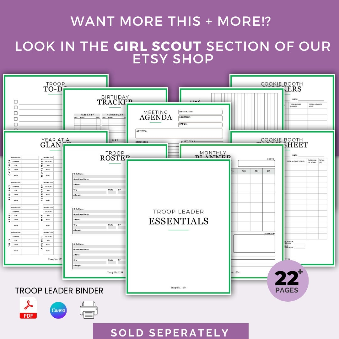 Printable Girl Scout Troop Leader Planner Meeting Notes Instant Digital Download Binder Daisy Brownie Cookie Booth Calendar GS Law Etsy Australia