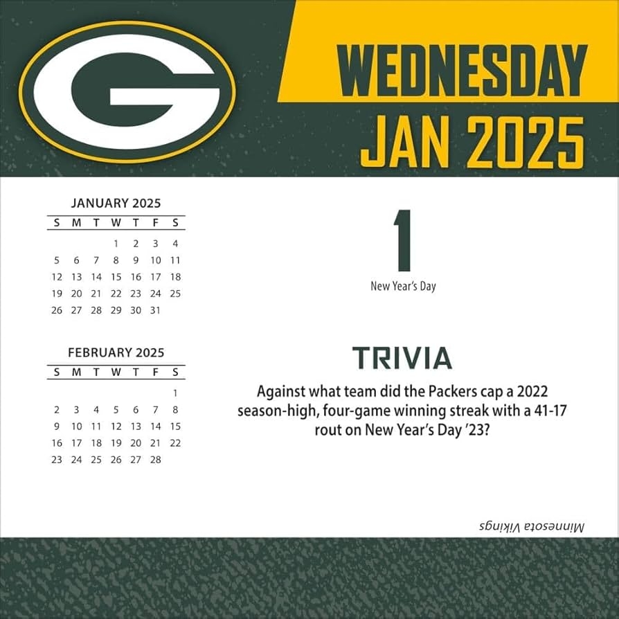 Amazon TURNER SPORTS Green Bay Packers 2025 Box Calendar 25998053039 Sports Outdoors
