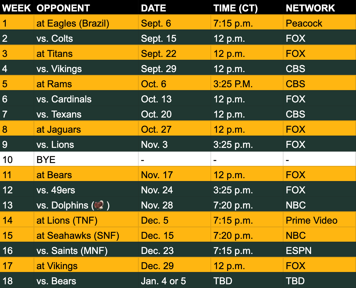 Green Bay Packers Schedule 2025 Printable