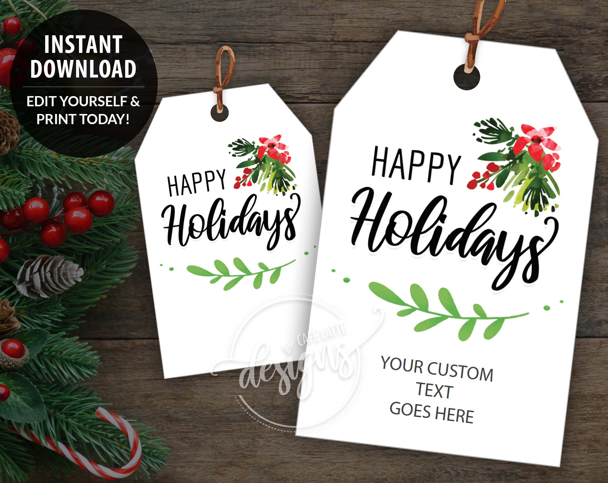 HAPPY HOLIDAYS Printable Gift Tags Editable Personalized Favor Tags Template Minimalist Instant Download Labels Thank You Business Company Etsy