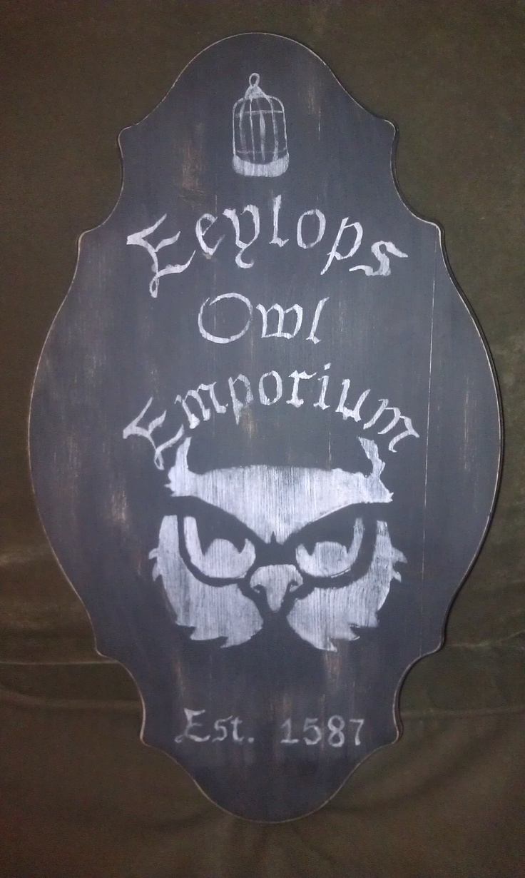 Distressed Handpainted Harry Potter Eyelops Owl Emporium Sign