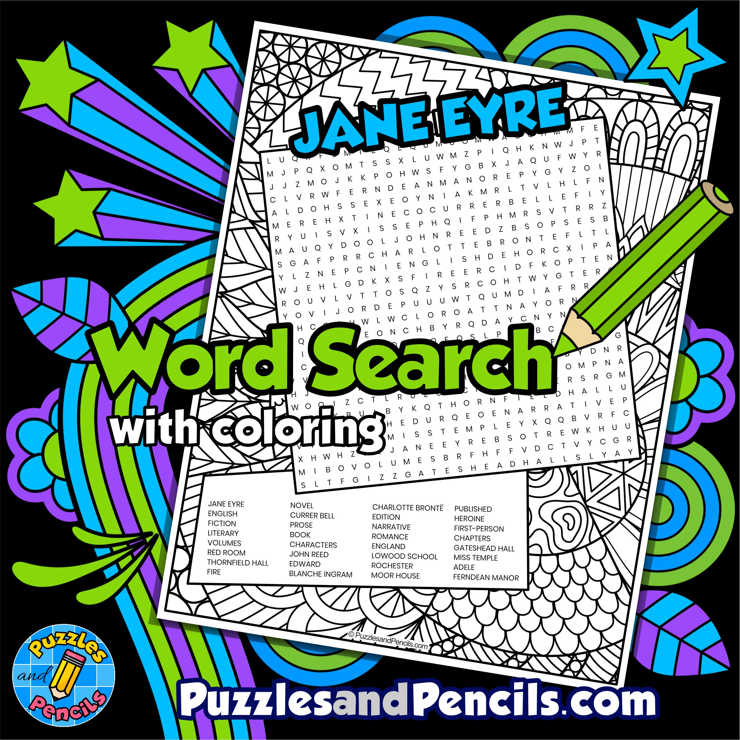 Jane Eyre Word Search Puzzle Activity Page With Coloring Charlotte Bronte Wordsearch Made By Teachers