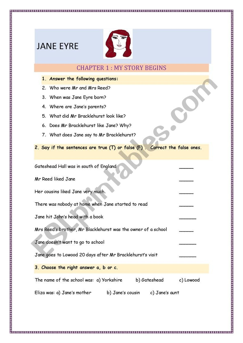 JANE EYRE READER FOR BEGINNERS Link To The Book And Worksheet For 1 Chapter ESL Worksheet By Rosahi