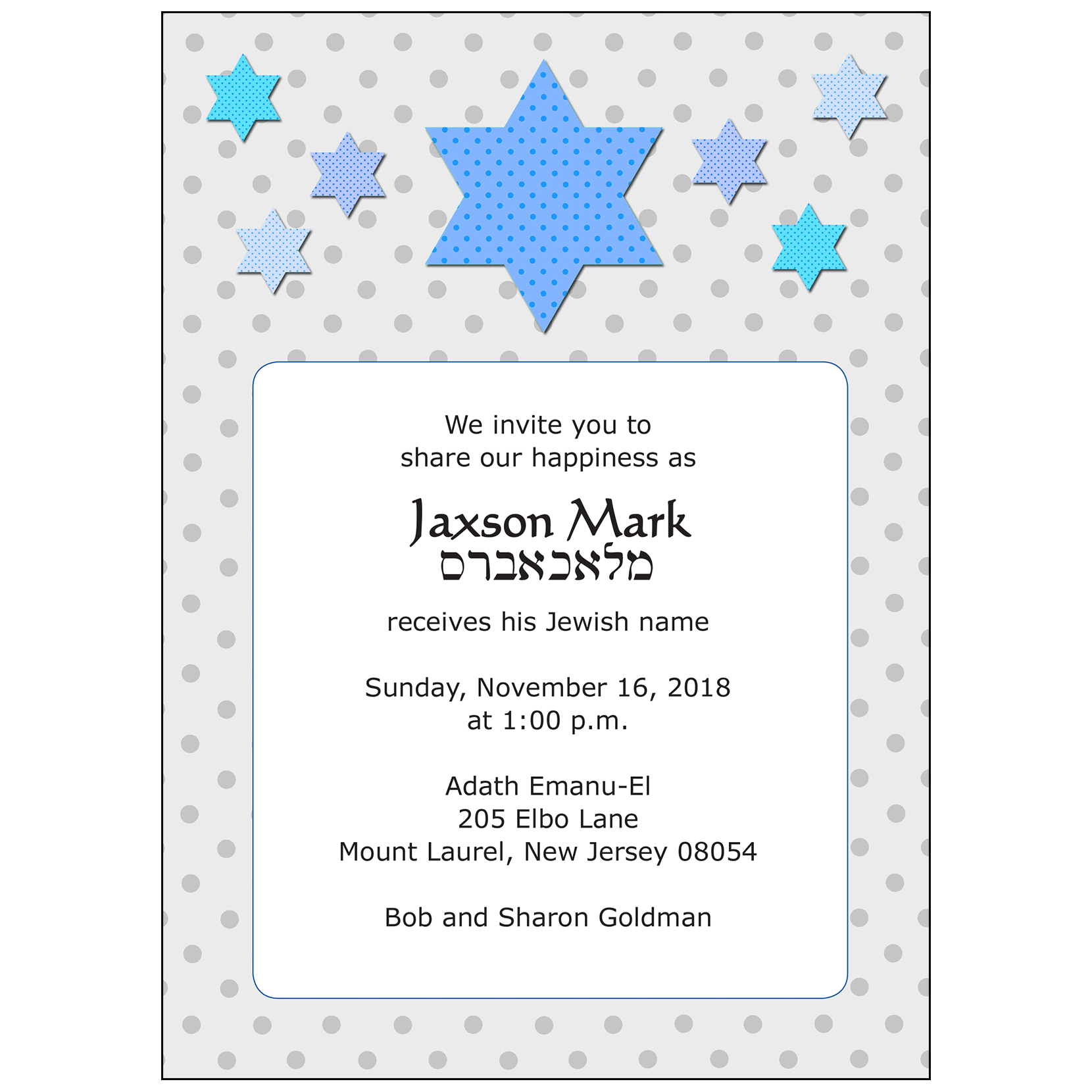 Jewish Printable Baby Naming Invitation