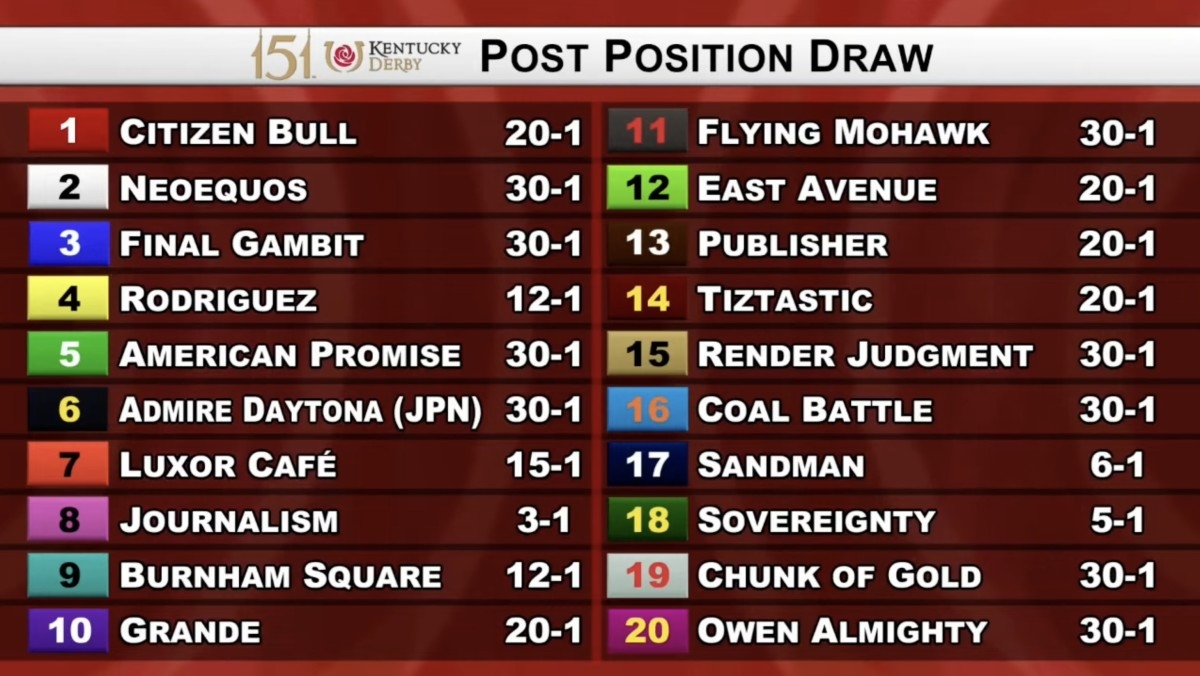 Journalism To Break From Post Eight In 2025 Kentucky Derby Installed As 3 1 Favorite Paulick Report Latest News And Commentary From The Horse Racing And Equine World