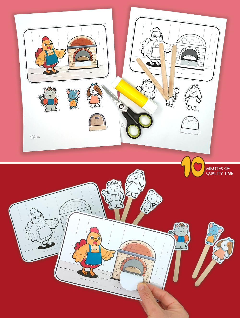 The Little Red Hen Stick Puppets Craft 10 Minutes Of Quality Time