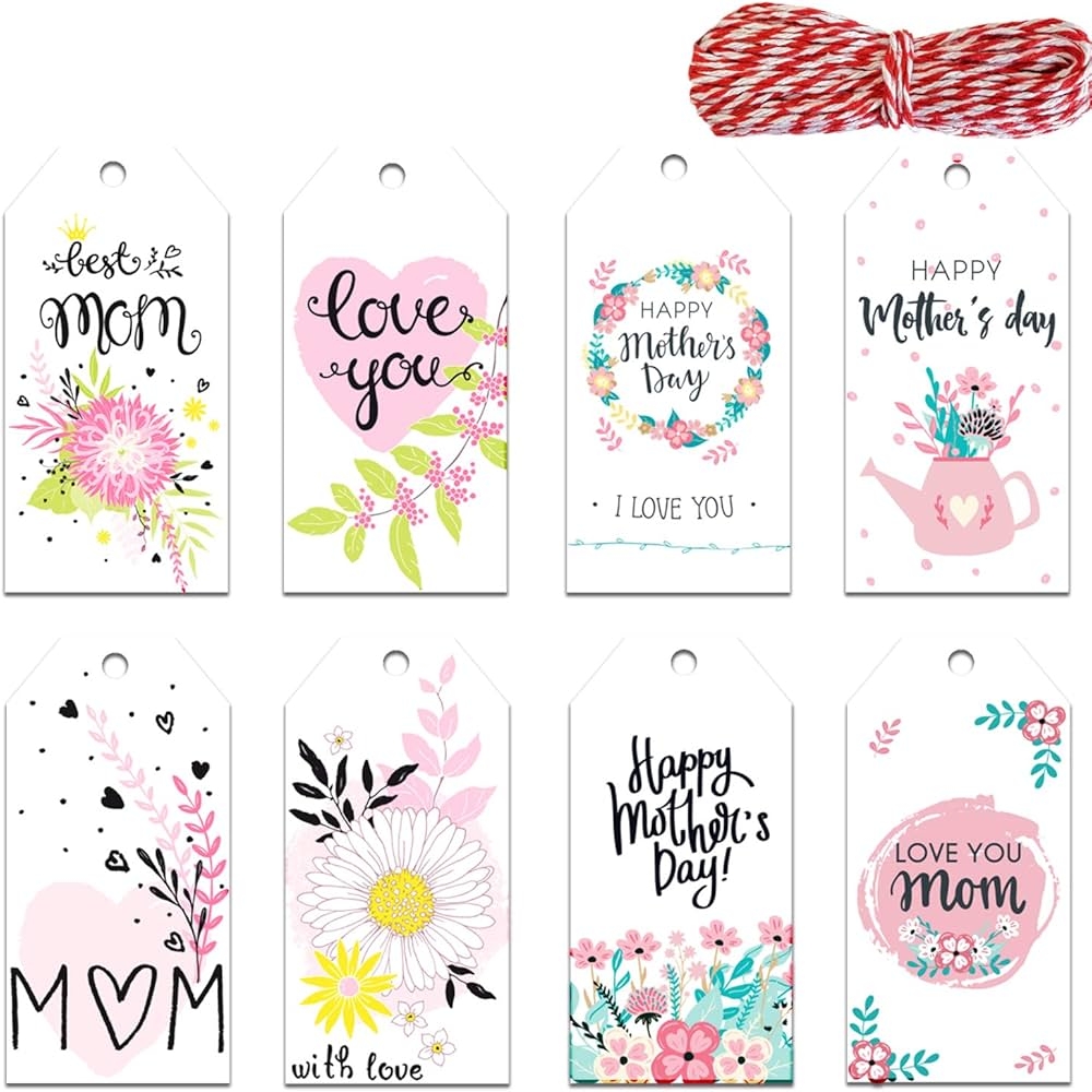 Amazon Doumeny 120Pcs 8 Style Mother s Day Paper Gift Tags Happy Mother s Day Hanging Labels Floral Love You Mom Best Mom Label Tags With 65 6 Feet Twines For DIY Crafts Mother Party