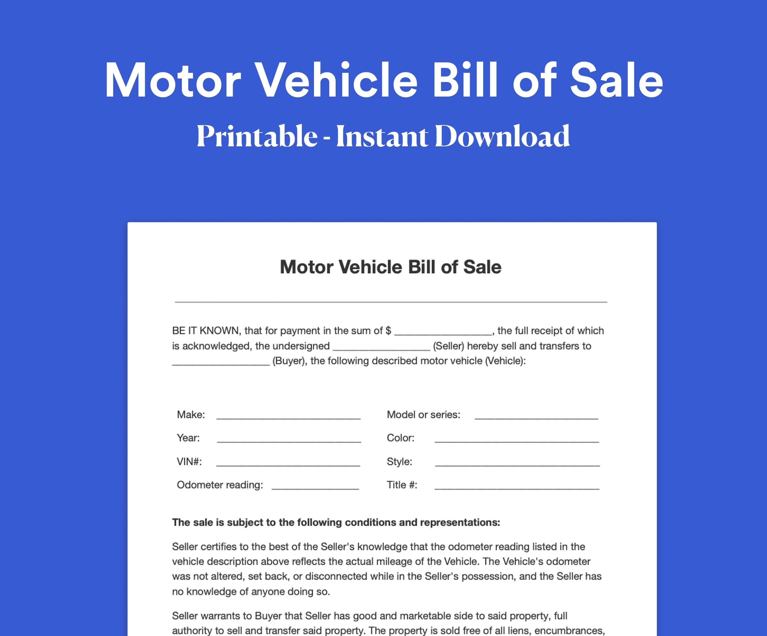 Motor Vehicle Bill Of Sale Bill Of Sale Car Sale Form Vehicle Sale Form Car Bill Of Sale Instant Download A4 Etsy