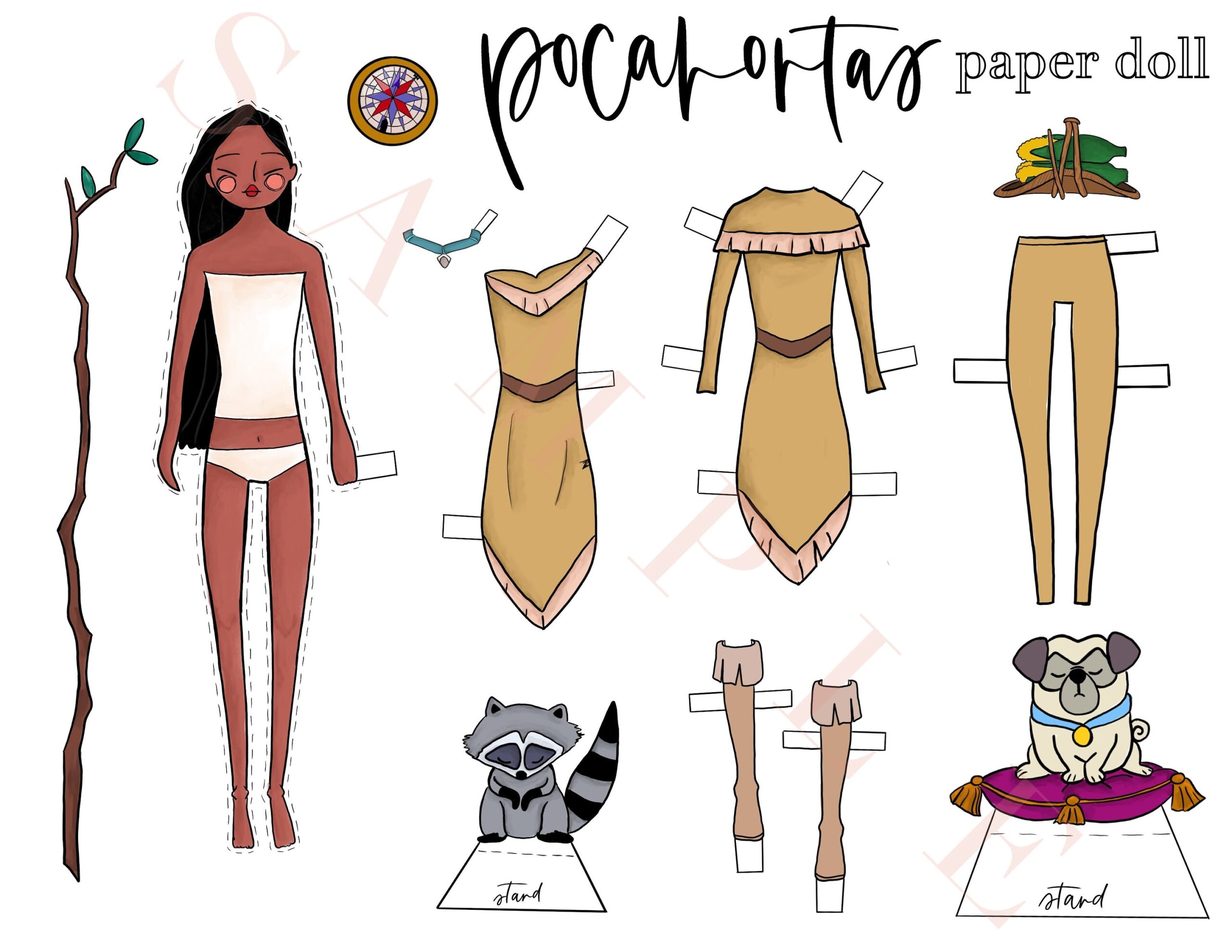 Pocahontas Paper Doll Native American American Indian Powhatan Indian Historical Paper Doll Historical Woman Etsy