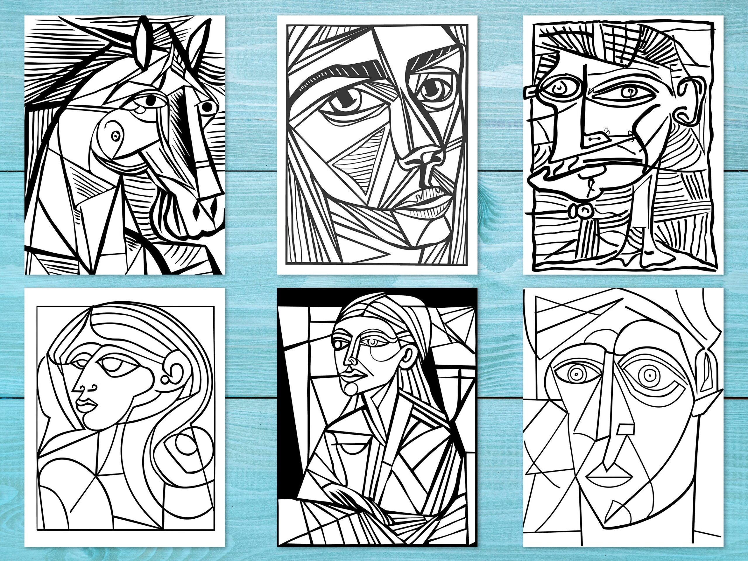 115 Pablo Picasso Coloring Pages Printable Instant Digital Download Abstract Modern Art Cubism Shapes Procreate Ipad PNG Paint Etsy