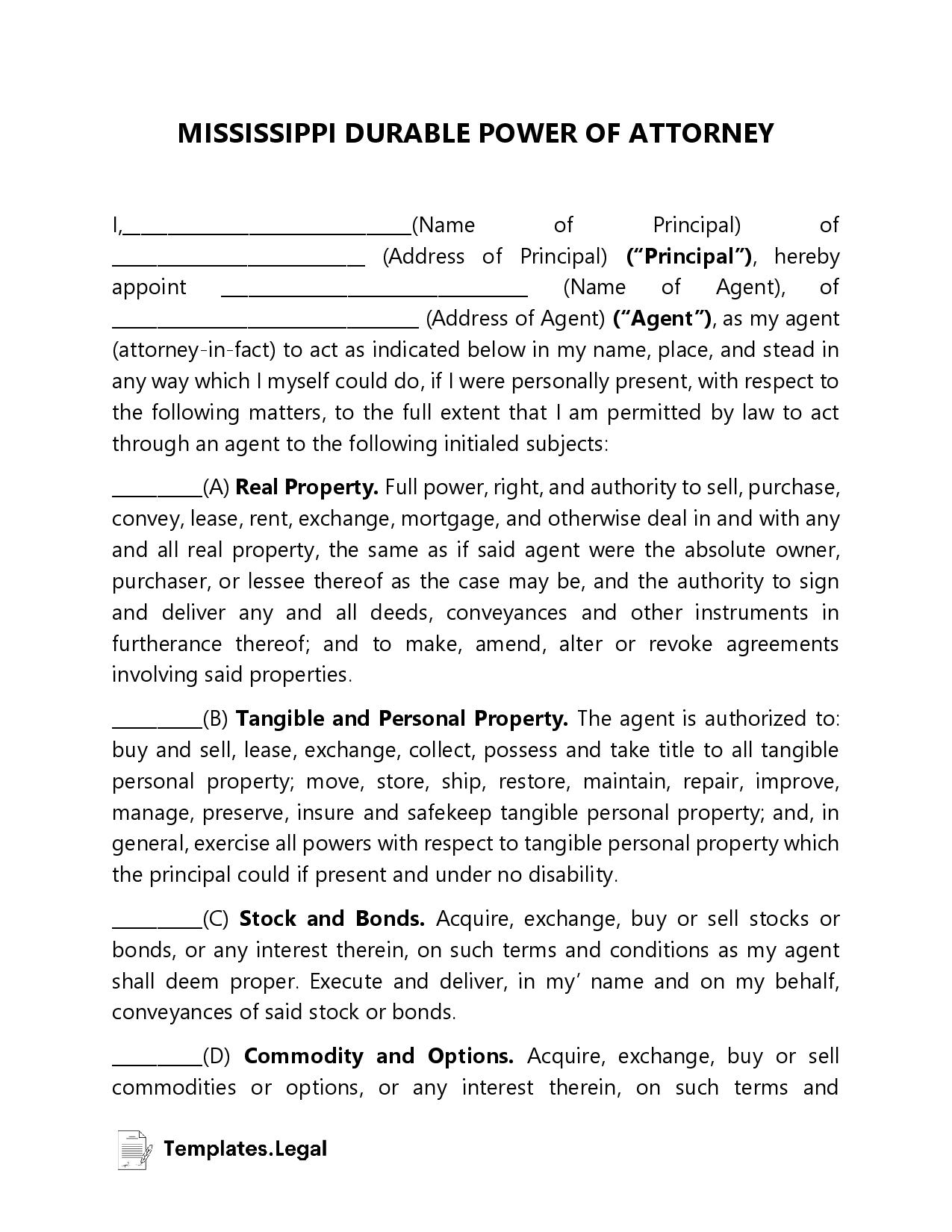 Mississippi Power Of Attorney Templates Free Word PDF ODT