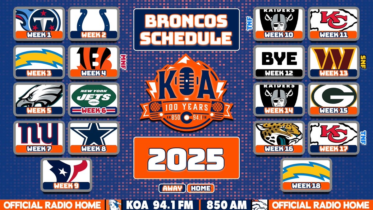 KOA 850 AM 94 1 FM On X First Look At The 2025 Broncos Schedule What s Your Record Prediction Schedule Release Special Is Live Now Https t co vEmKUKDEIk Https t co GQ5IyrCVvD