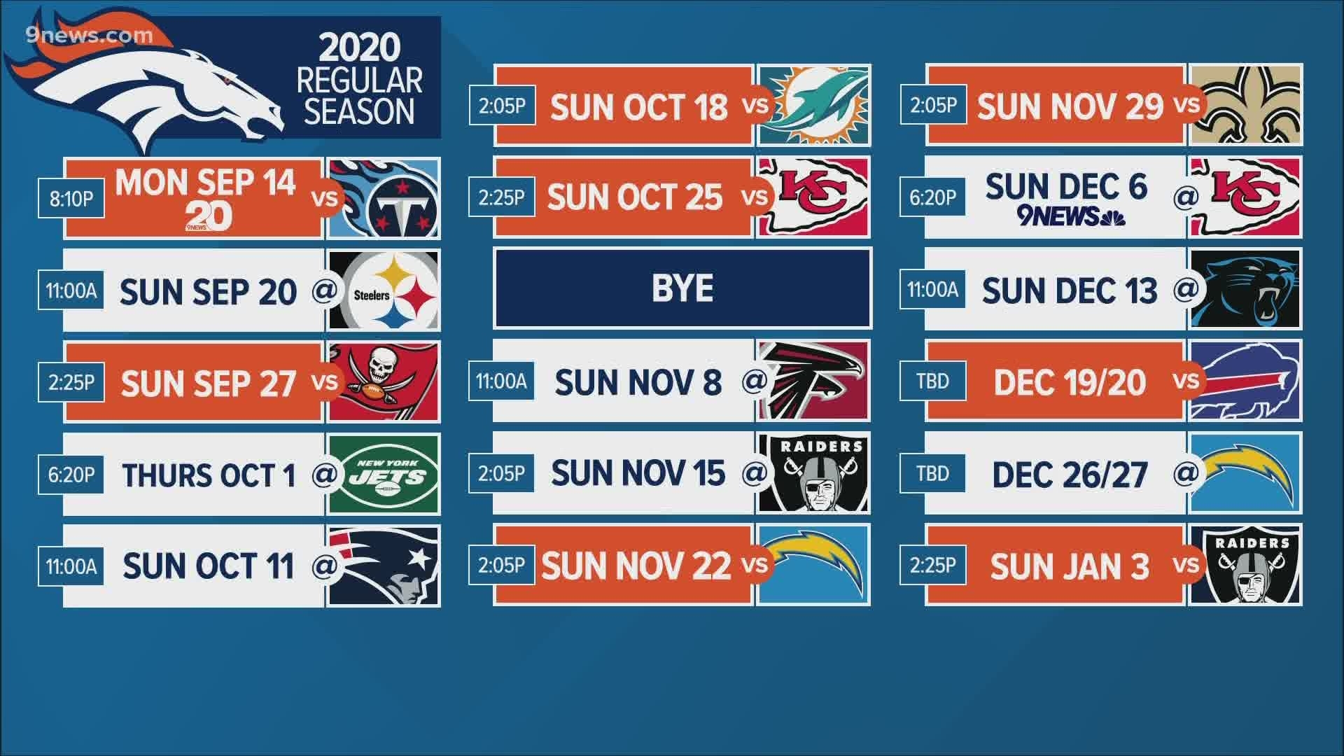 Denver Broncos 2025 Regular Season NFL Schedule 9news