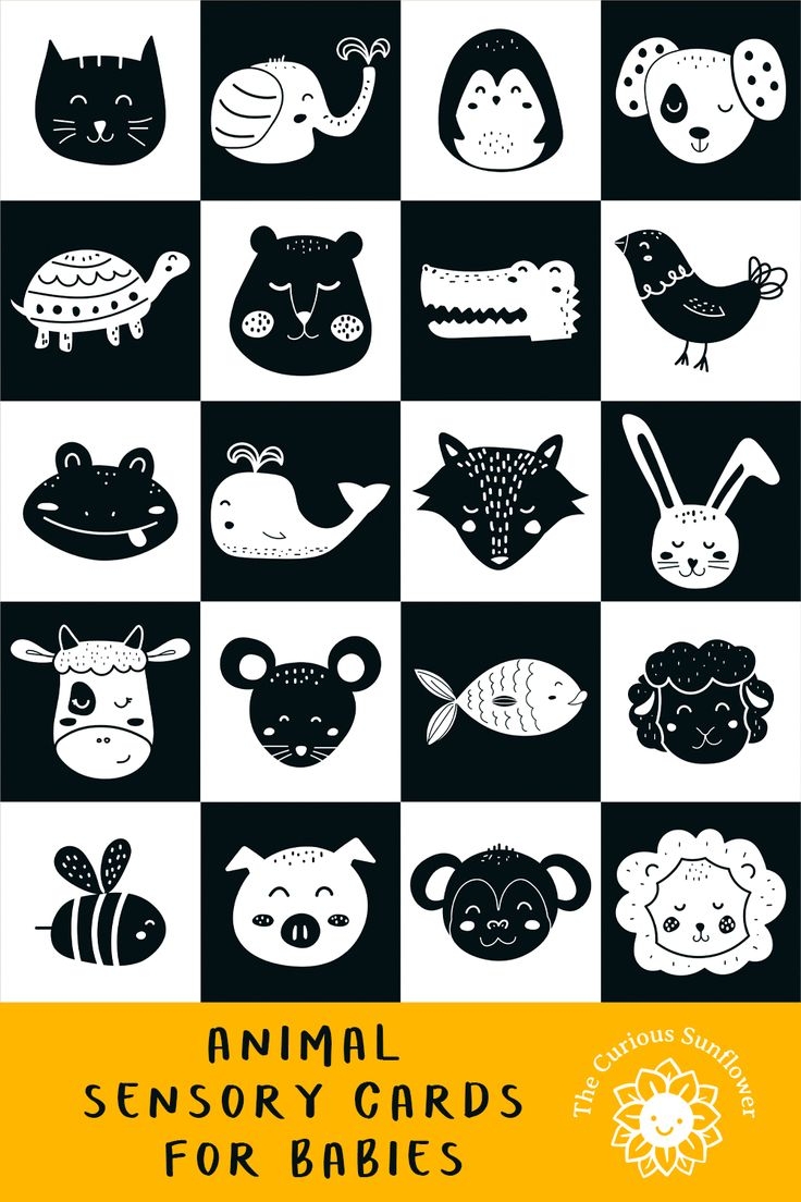 Monochrome Animals High Contrast Black And White Stimulation Cards For Babies