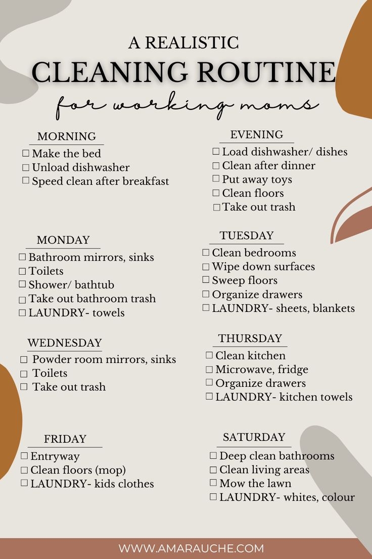 Realistic Cleaning Schedule For Busy Moms Free Printable
