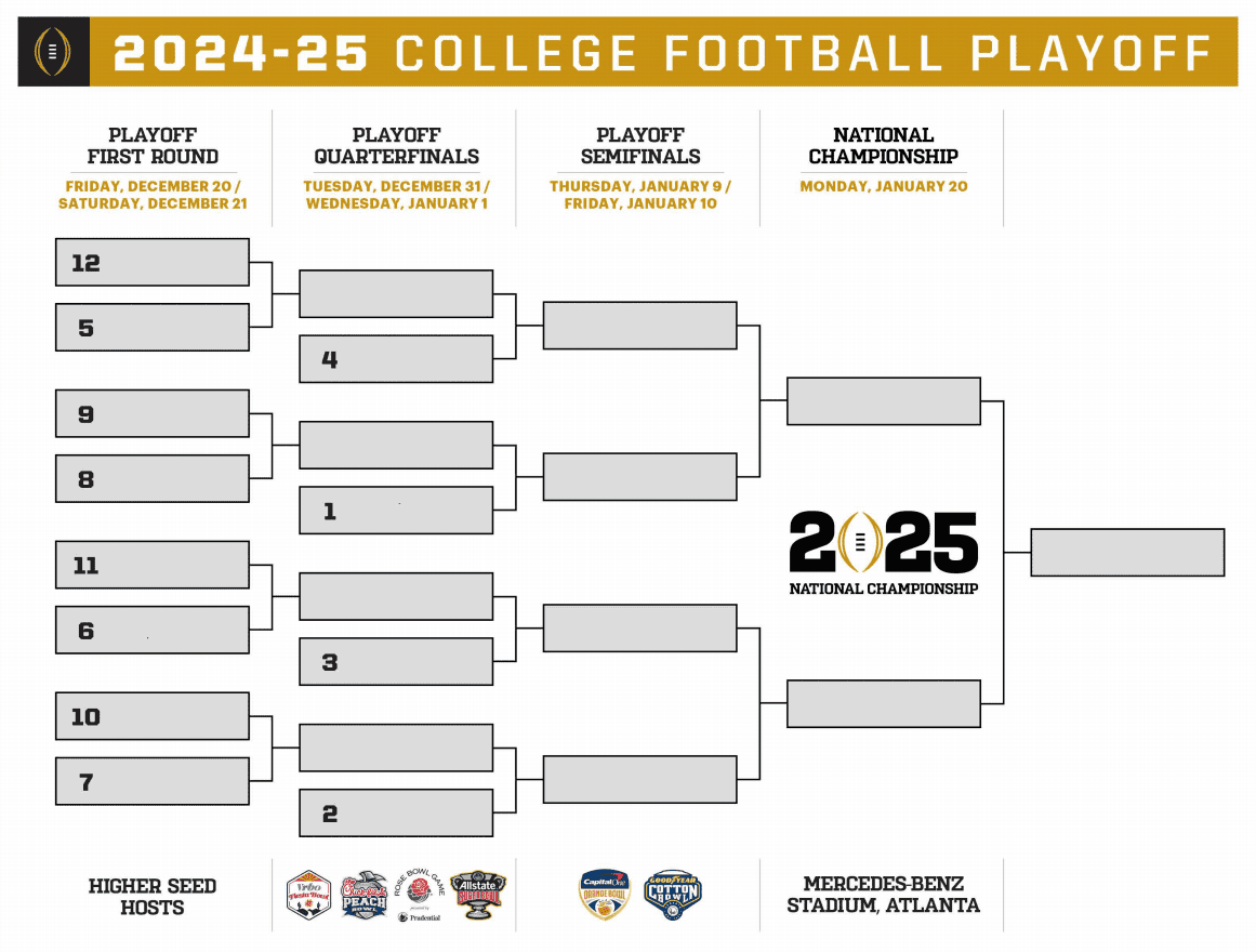College Football Playoff Announces 2024 25 Kick Times And Broadcast Schedule For 2024 25 Playoff On ESPN And TNT Sports College Football Playoff