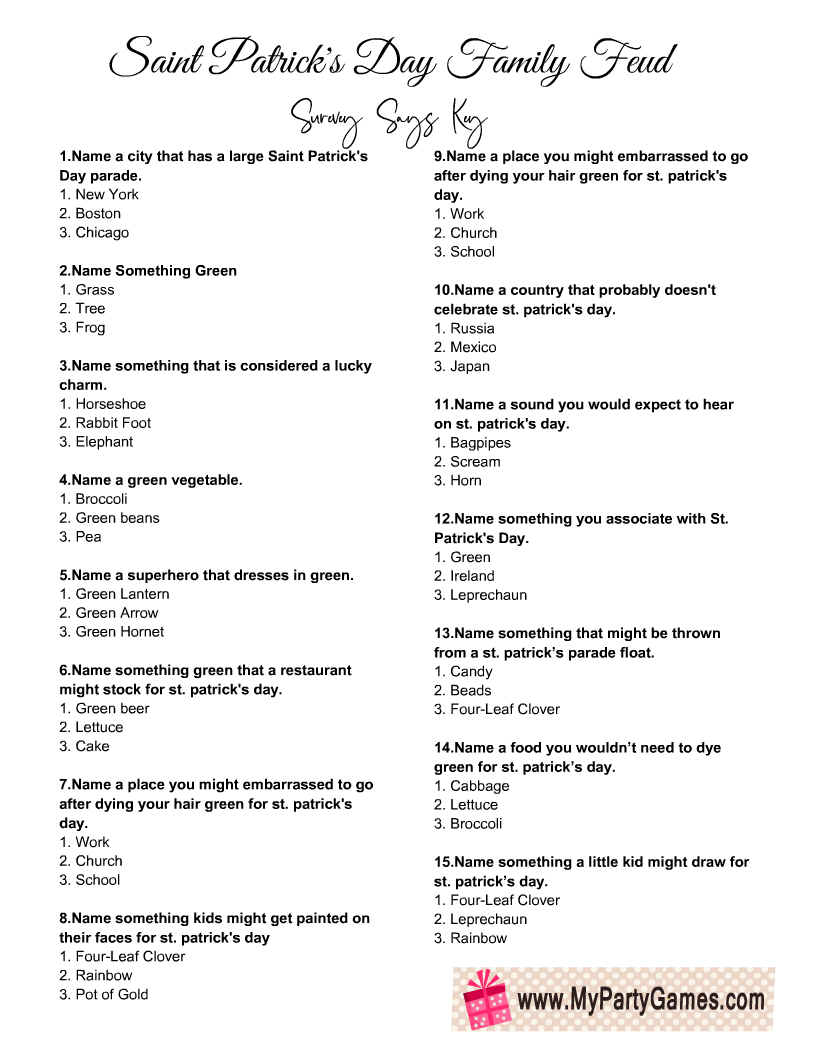 Free Printable Saint Patrick s Day Family Feud Game
