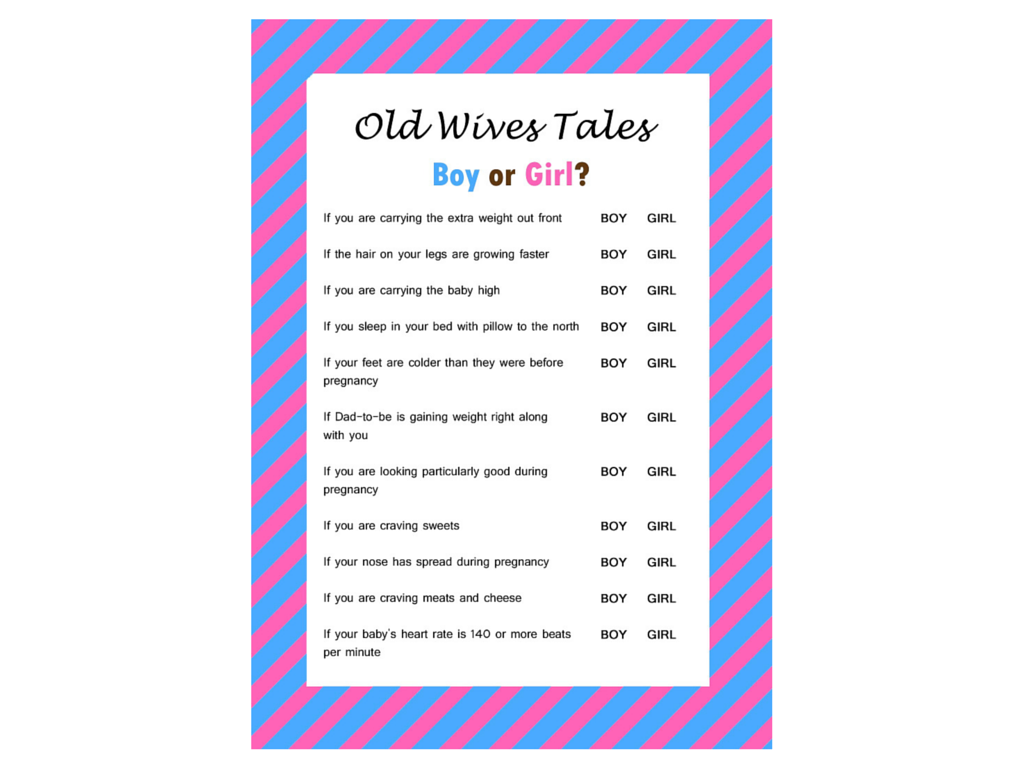 FREE The Old Wives Tale Gender Reveal Baby Shower Game Magical Printable
