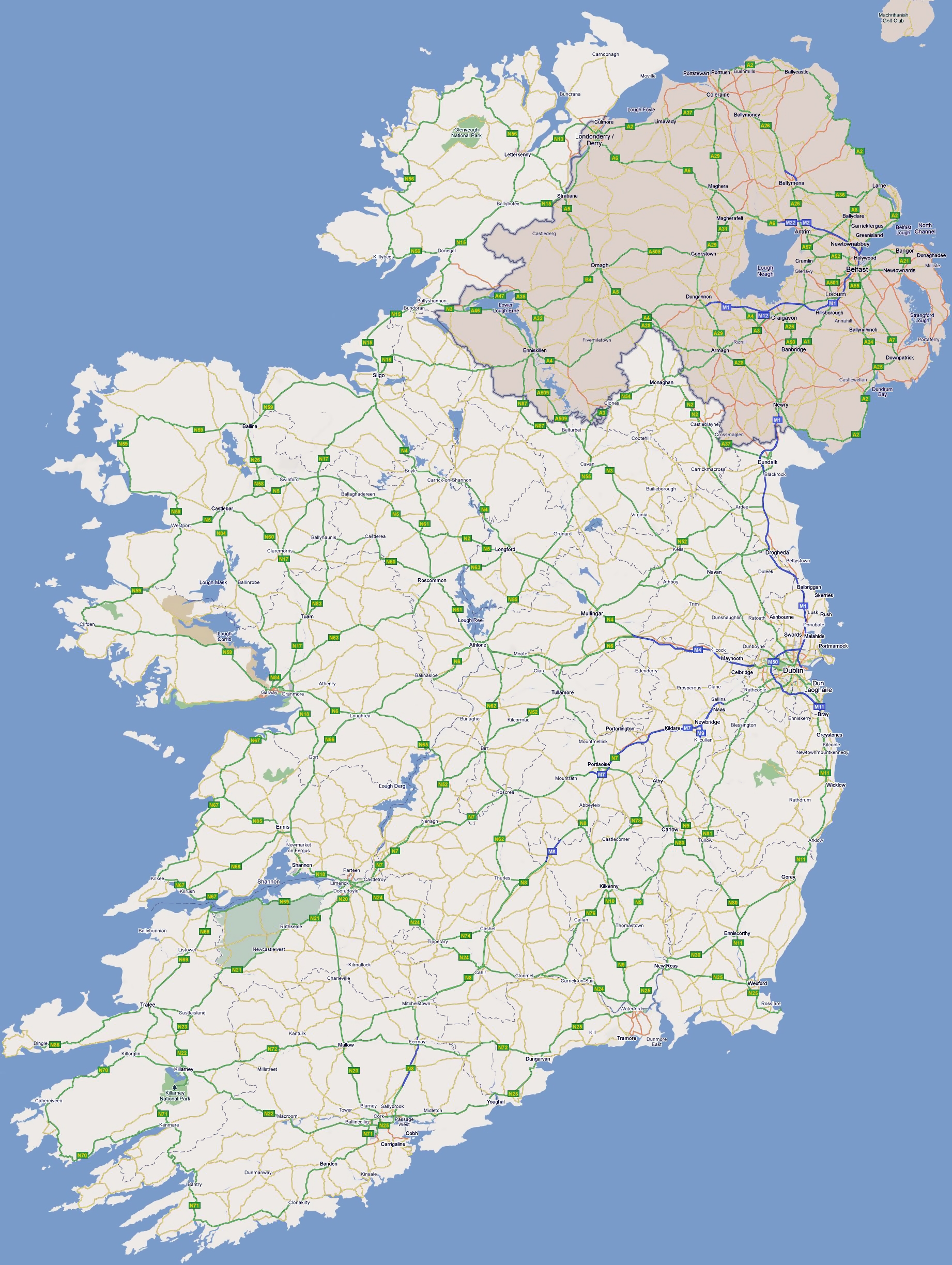Printable Road Map Of Ireland