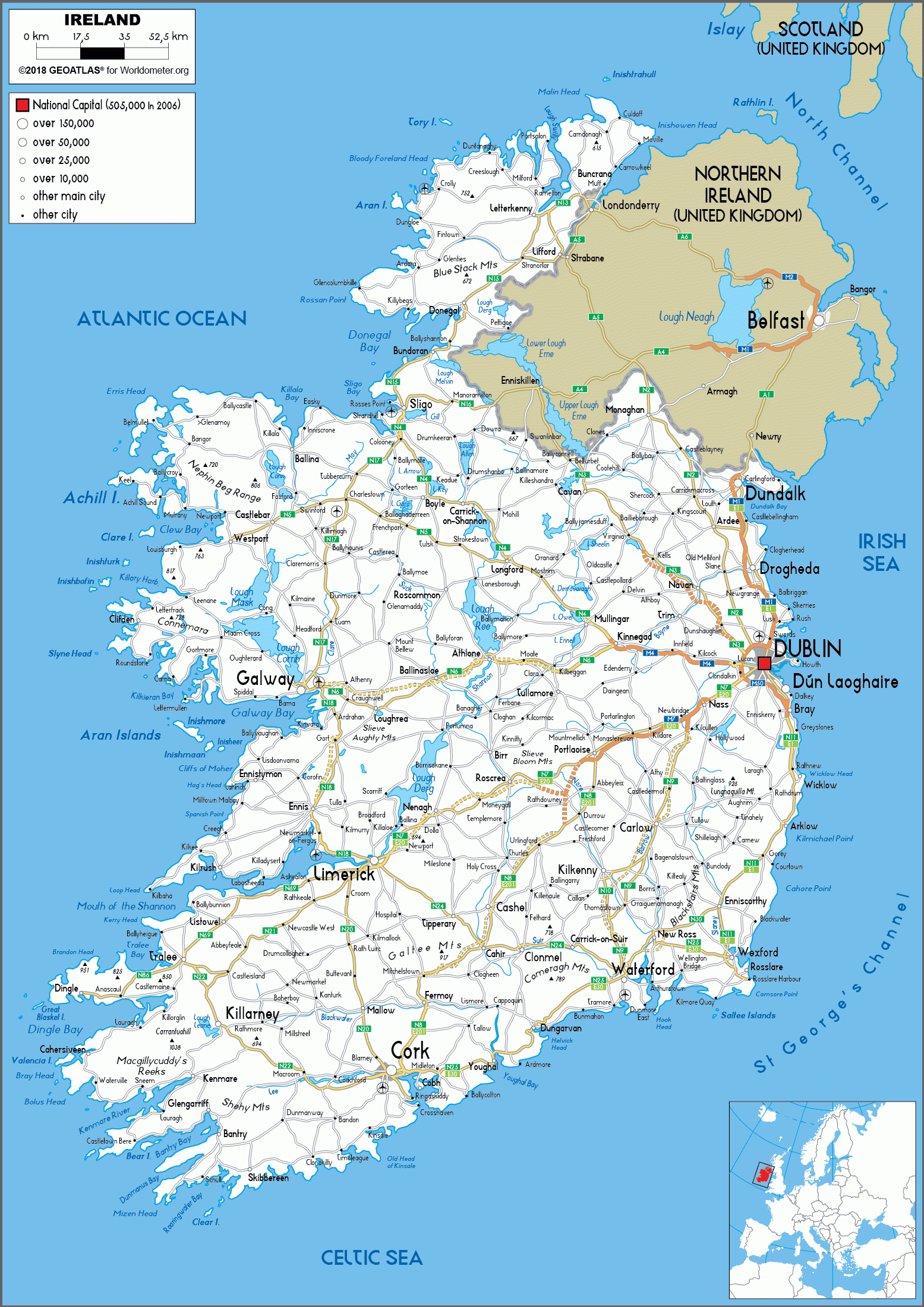 Large Size Road Map Of Ireland Worldometer