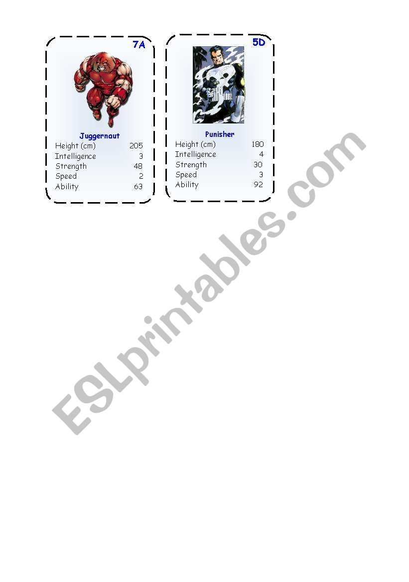 Top Trump Cards Marvel Heroes 1 3 ESL Worksheet By Nssarj