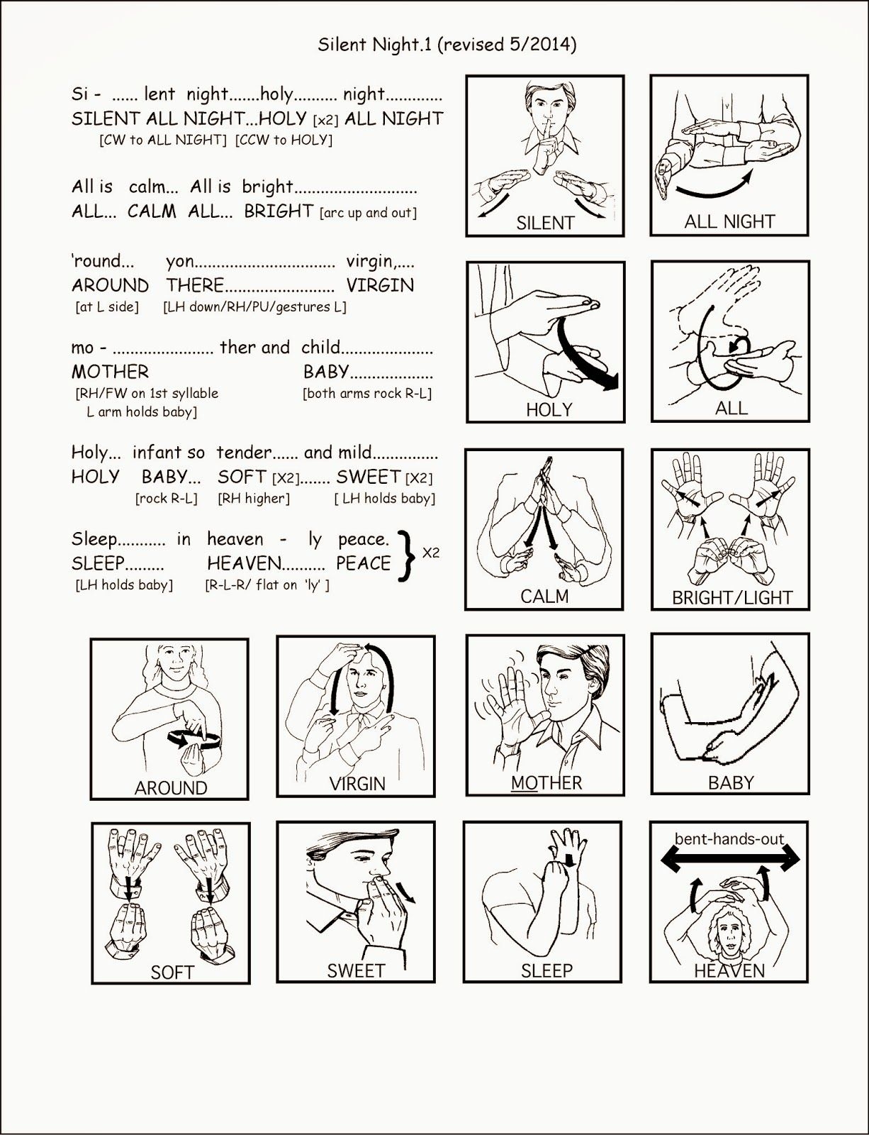 Silent Night In Sign Language Printable