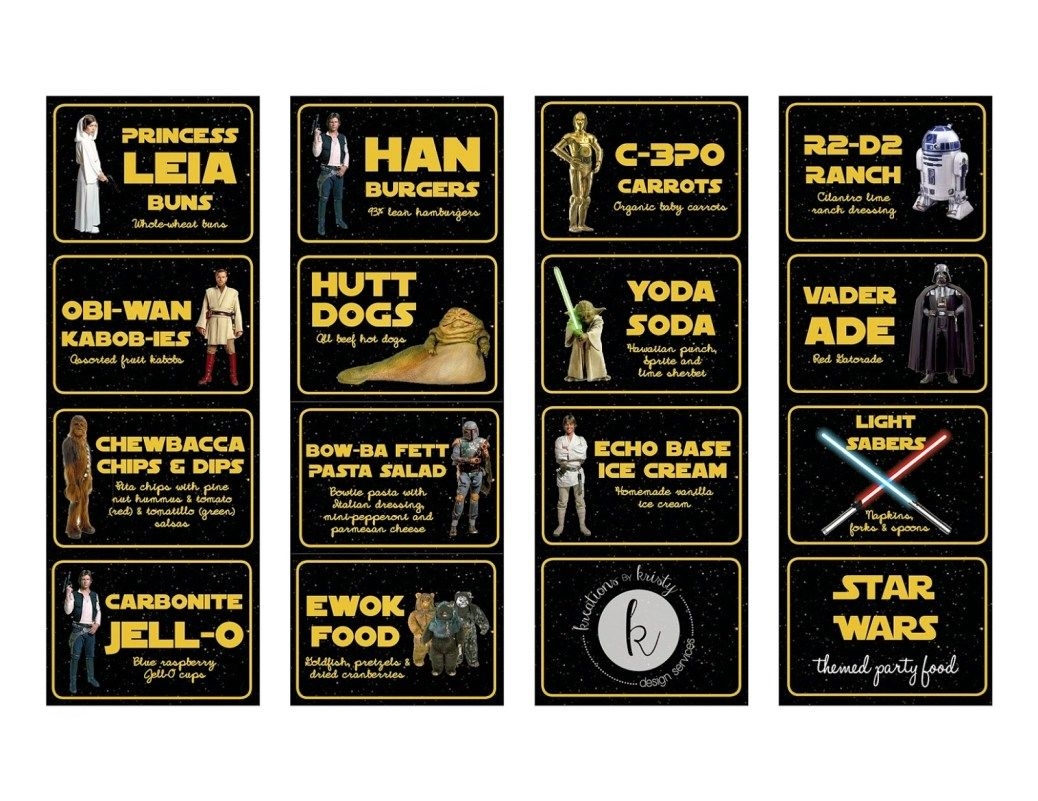 Star Wars Party Food Labels Template Printable Birthday Party Decoration