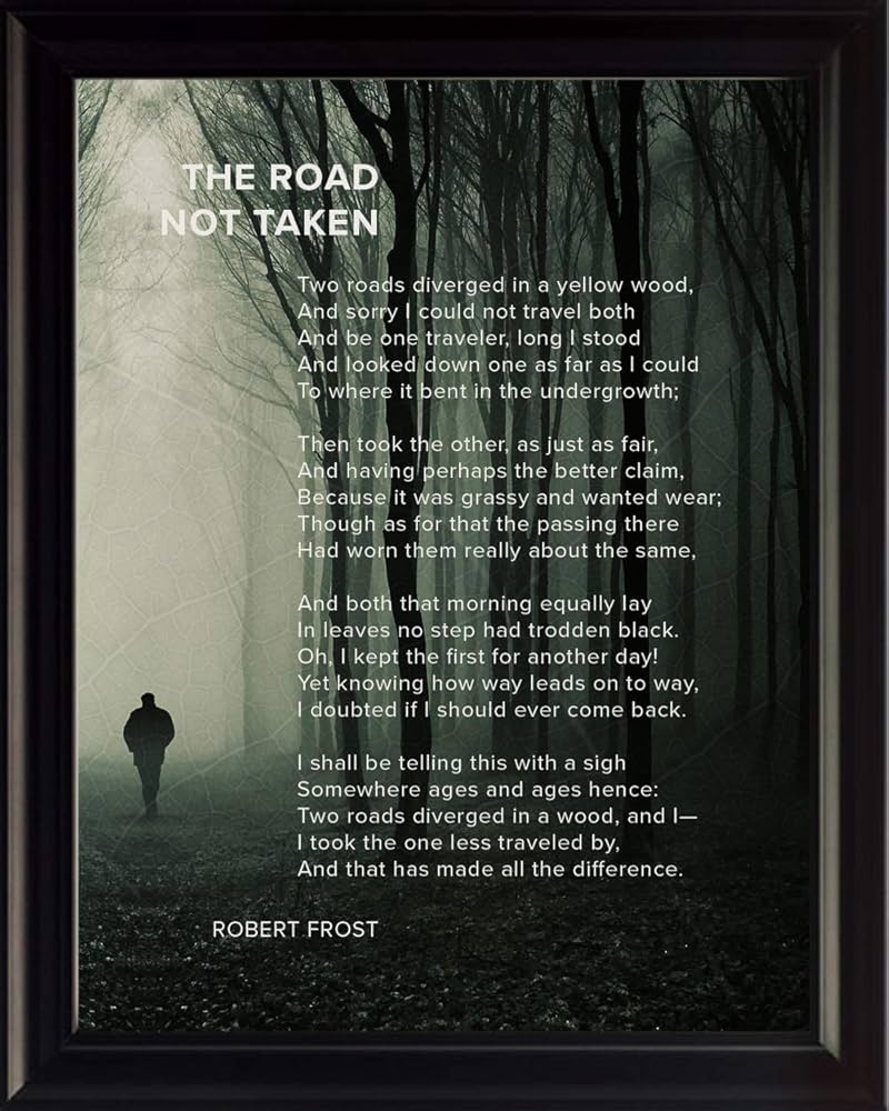 Amazon The Road Not Taken Poem By Robert Frost 8×10 Framed Motivational Poster Print Photo Picture Or Framed Wall Art Decor Inspirational Poems Collection Holidays Christmas Gifts Posters Prints