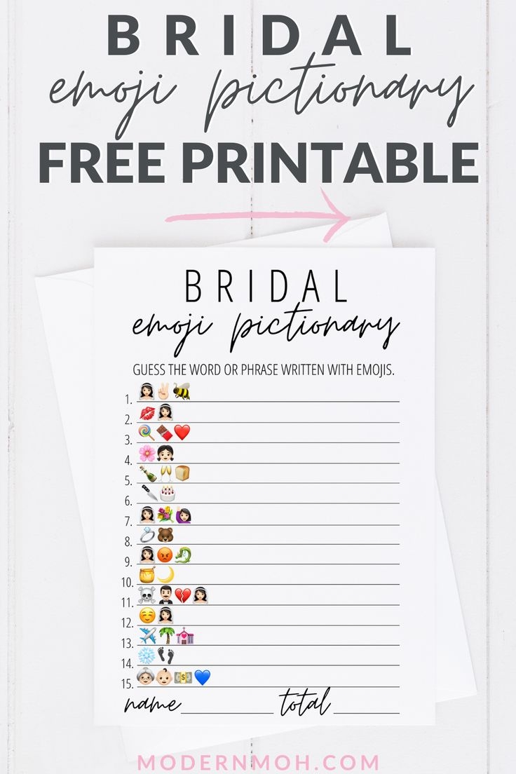 Bridal Emoji Pictionary Free Printable Modern MOH