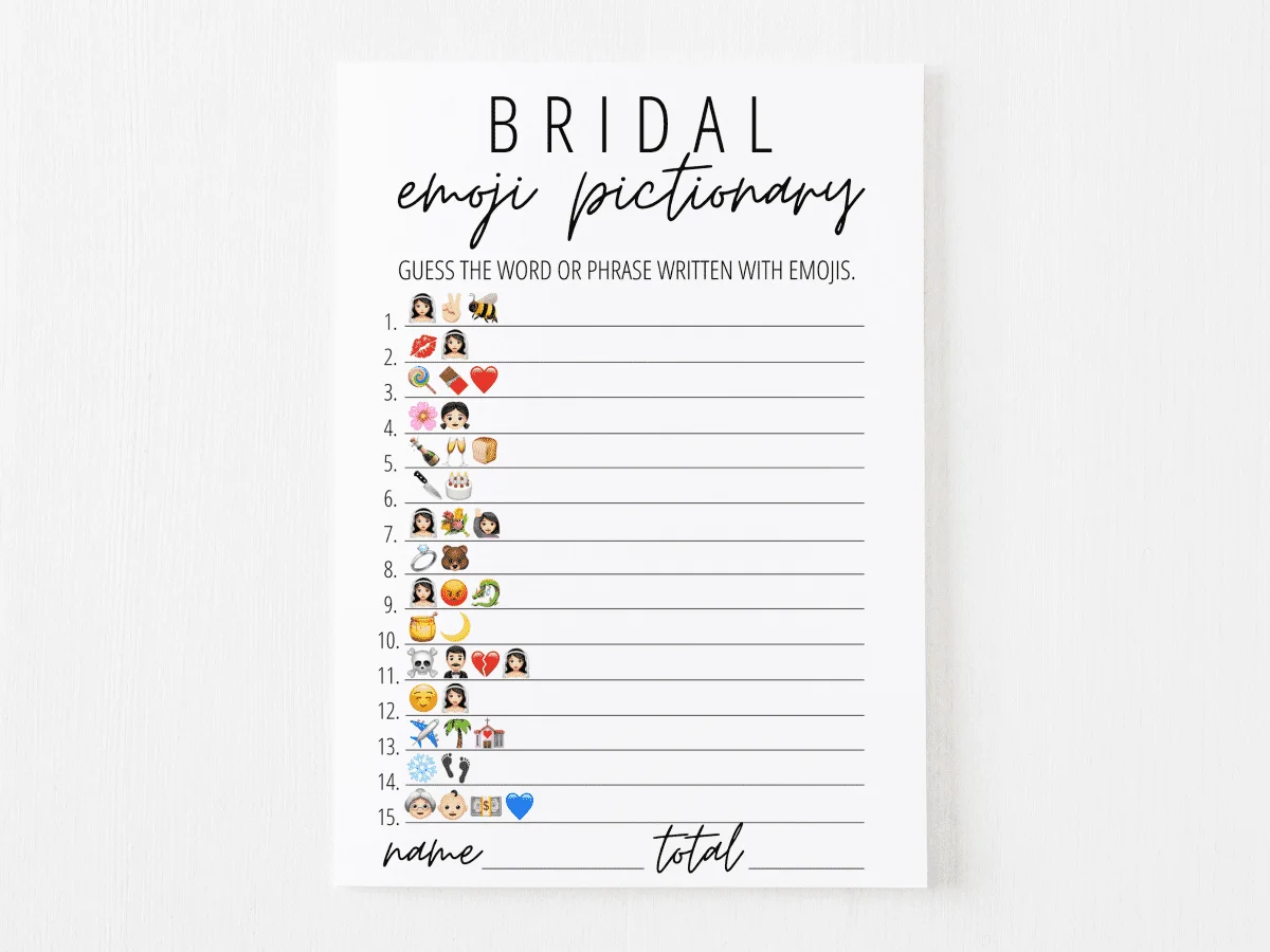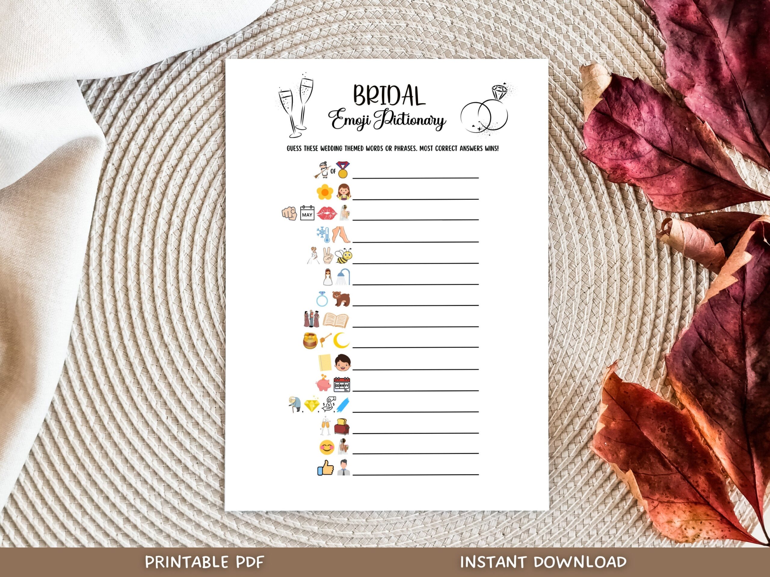 To play Wedding Emoji Pictionary, simply download and print out the free templates available online. You can choose from a variety of designs and difficulty levels to suit your guests’ preferences. Then, distribute the sheets along with pens or pencils to your guests.