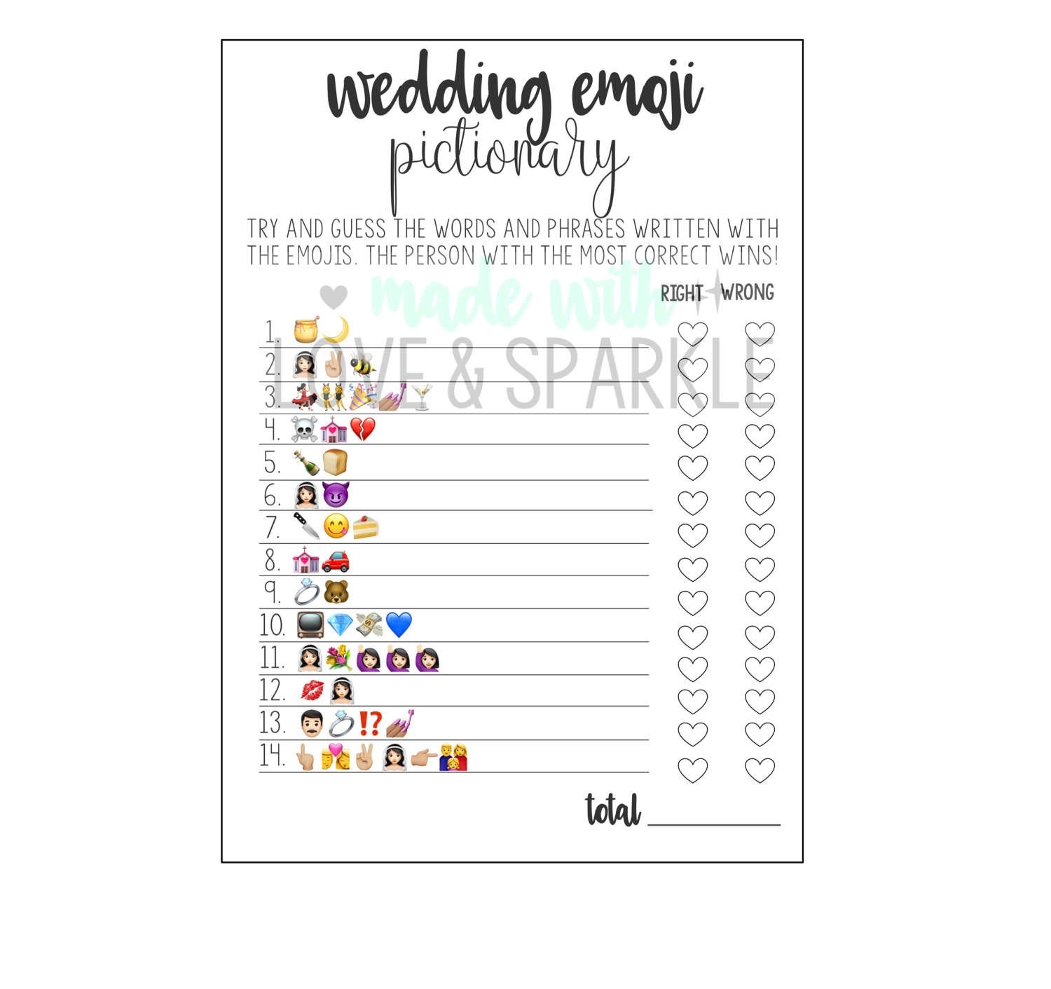 Wedding Emoji Pictionary Wedding Emoji Game Bridal Shower Emoji Game Bridal Shower Printable Game Printable Bridal Shower Games Etsy