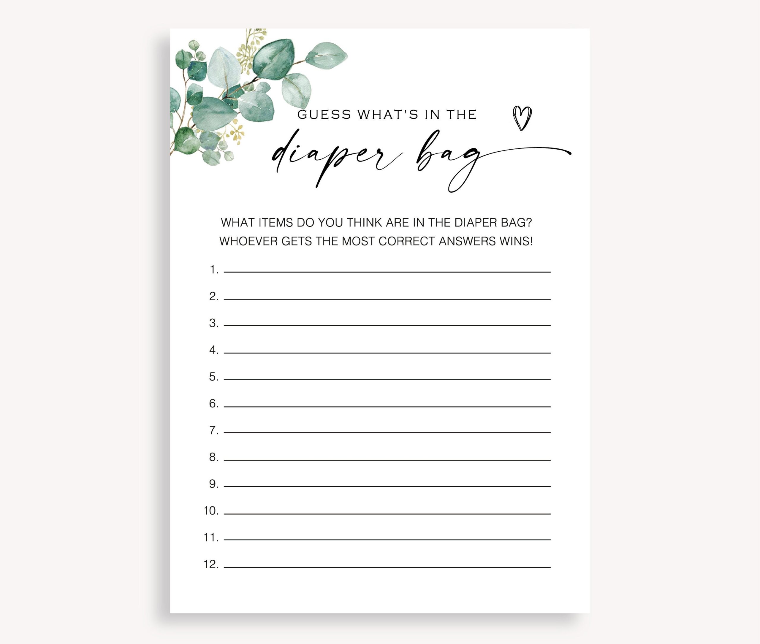 What s In The Diaper Bag Game Gender Neutral Baby Shower What Is In The Diaper Bag Baby Shower Game Baby Shower Diaper Bag Game 40 FA Etsy