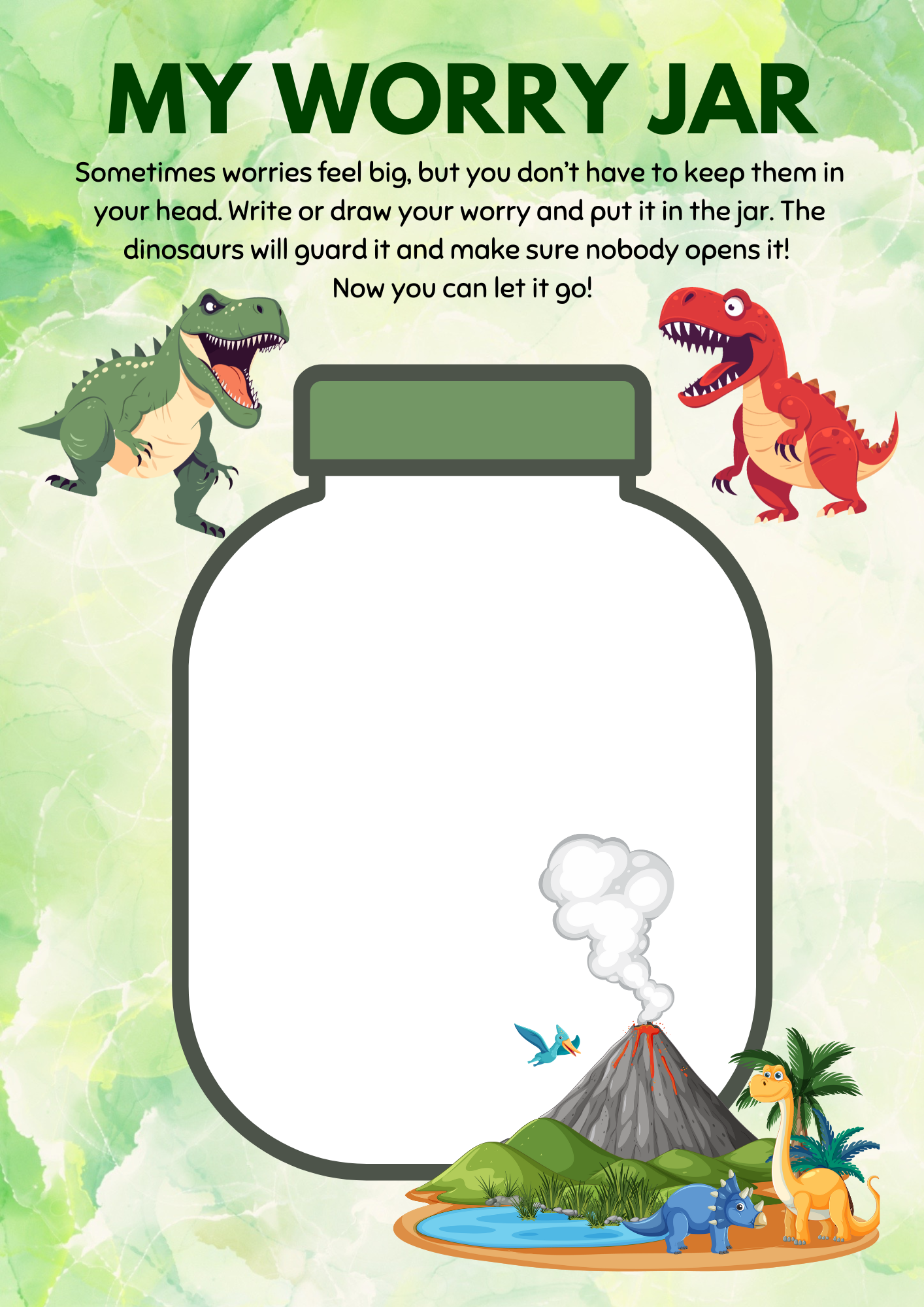 My Worry Jar Dinosaur Template For Kids Free Anxiety Tools And Resources Www anxietyhelpbox