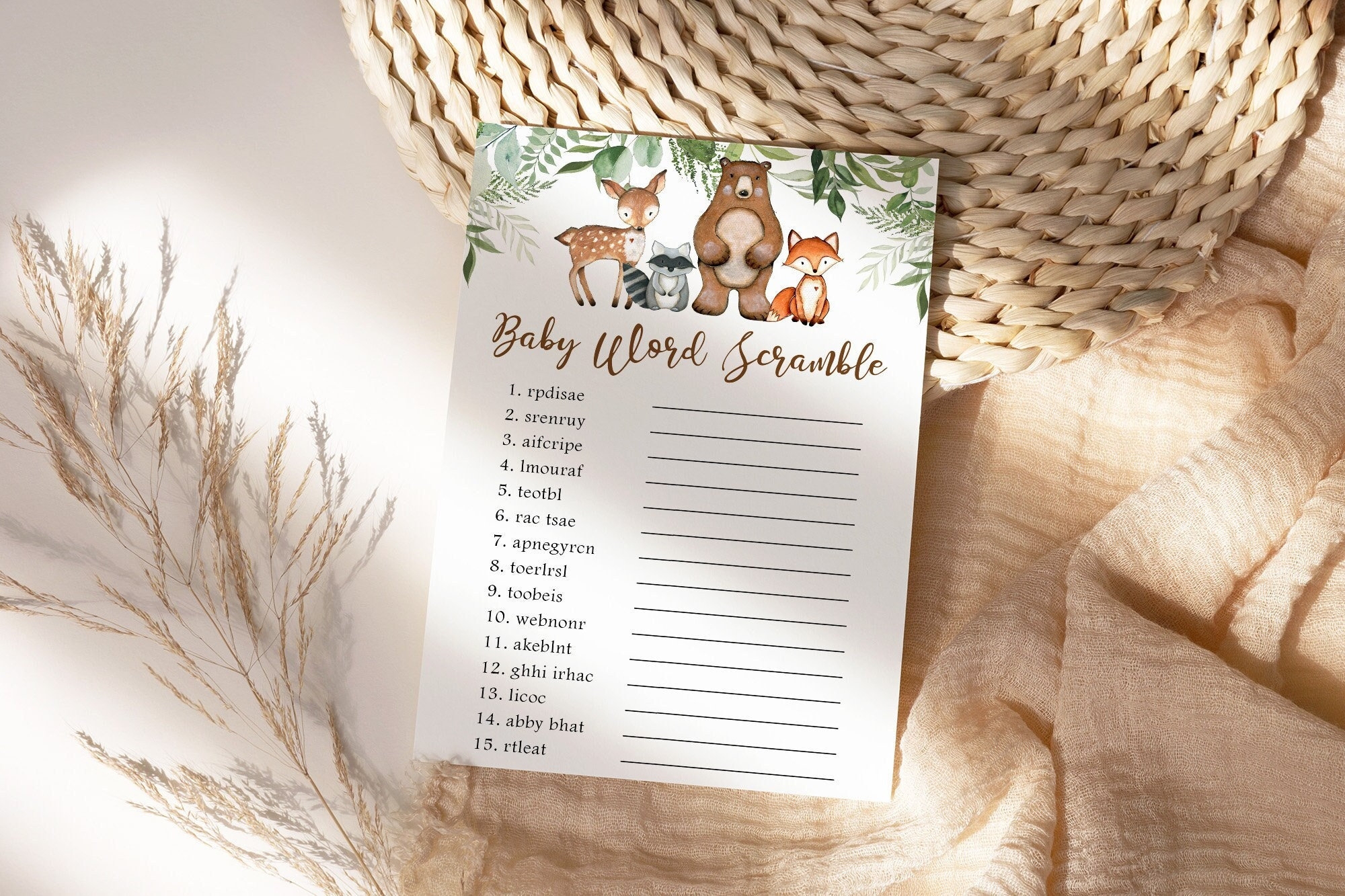 Woodland Baby Shower Game Word Scramble Game With Answer Key Forest Animals Woodland Baby Shower Printable Gender Neutral Download WS1 Etsy